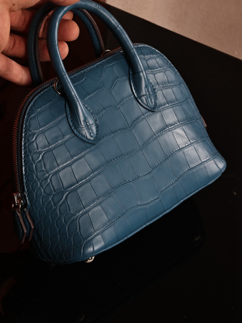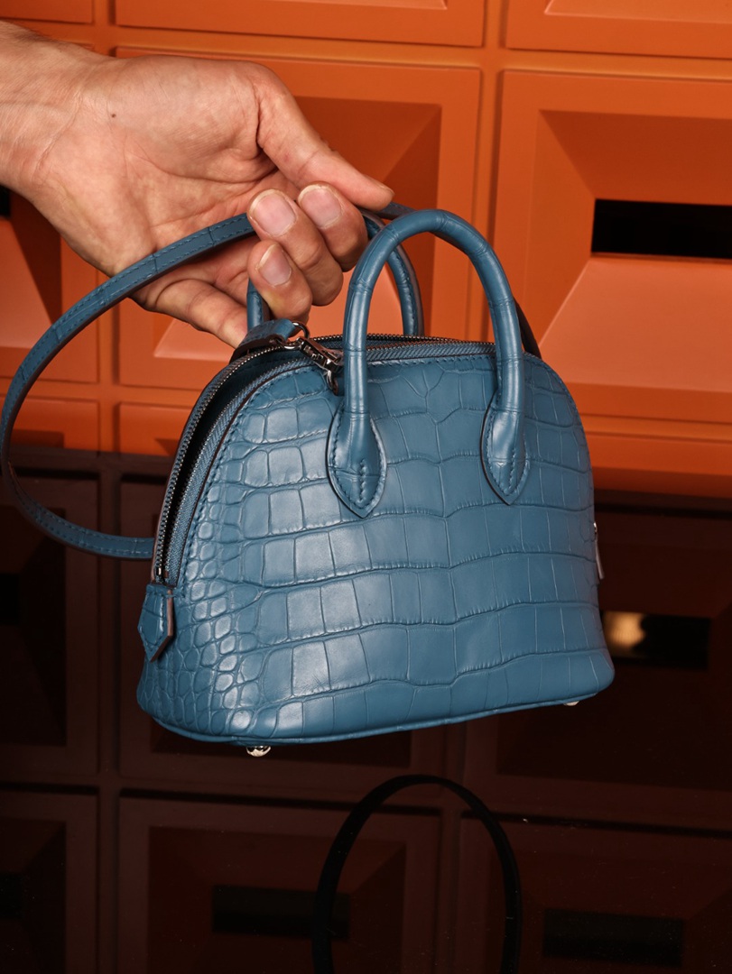 Hermes Mini Bolide 1923 Matte Alligator Bleu Jean Bag