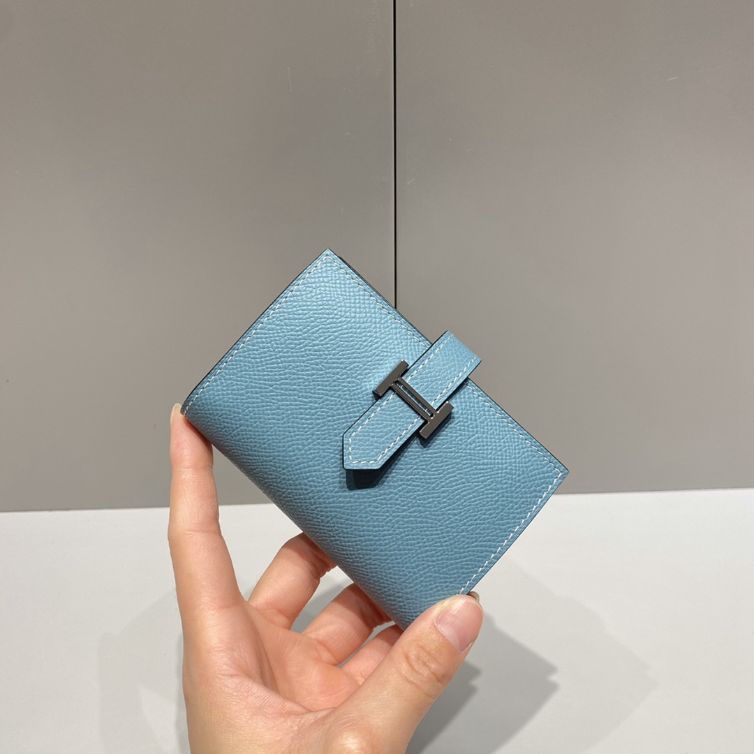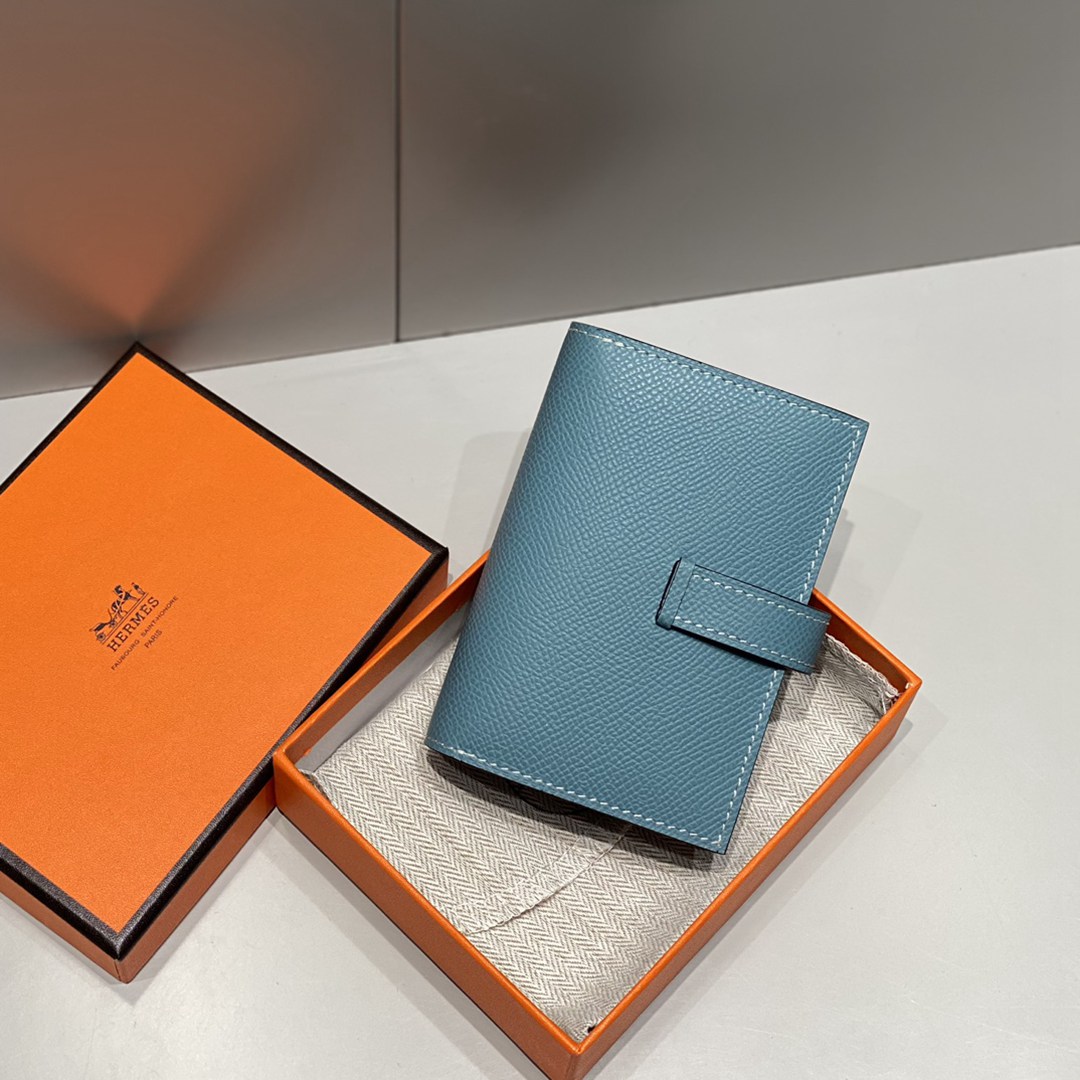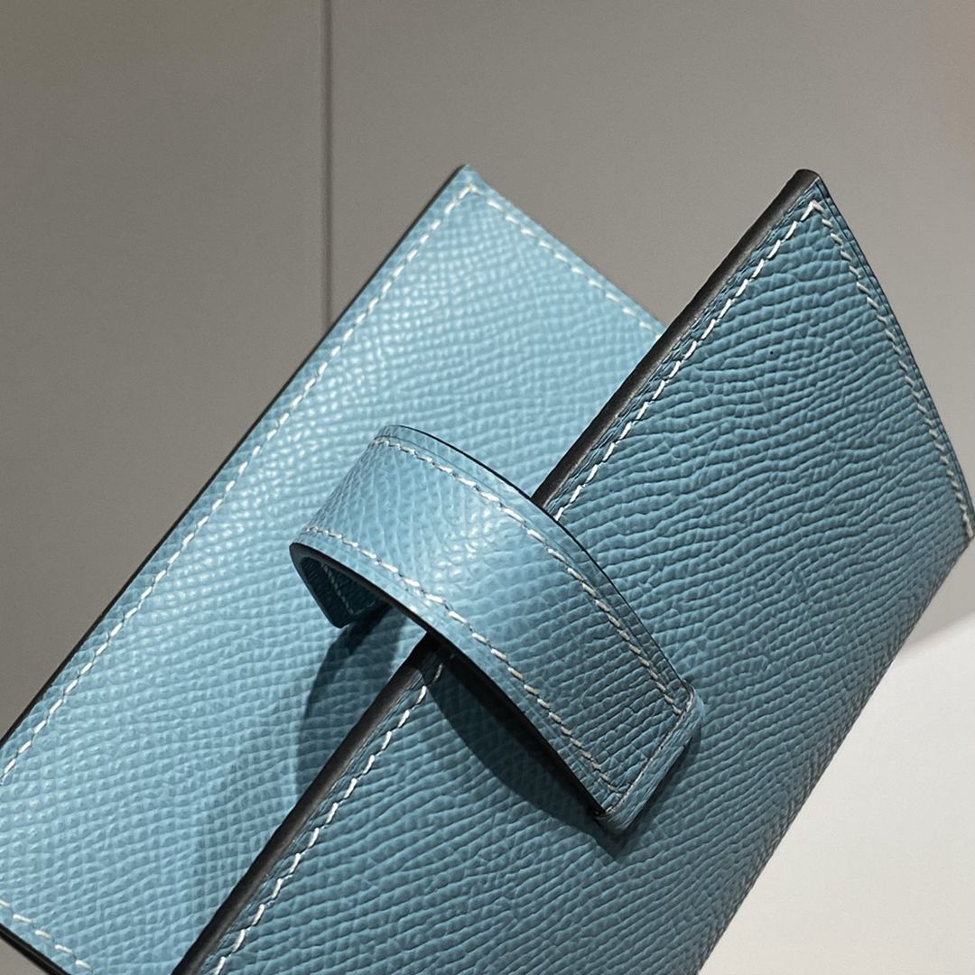 Hermes Epsom Bearn Gusset Wallet Bleu Jean Silver Hardware