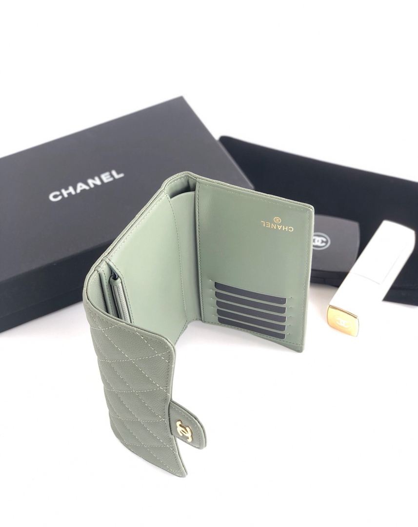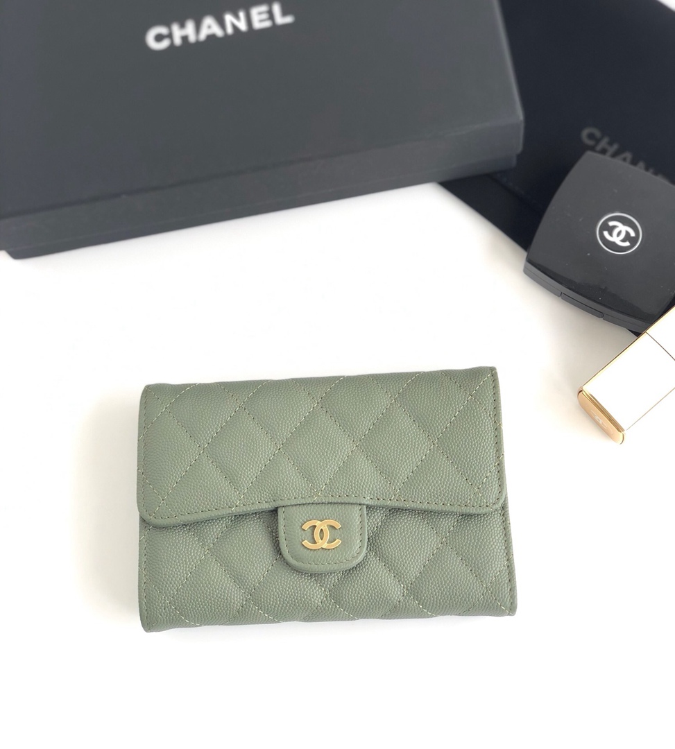 chanel purse cf green grained calfskin gold hardware medium