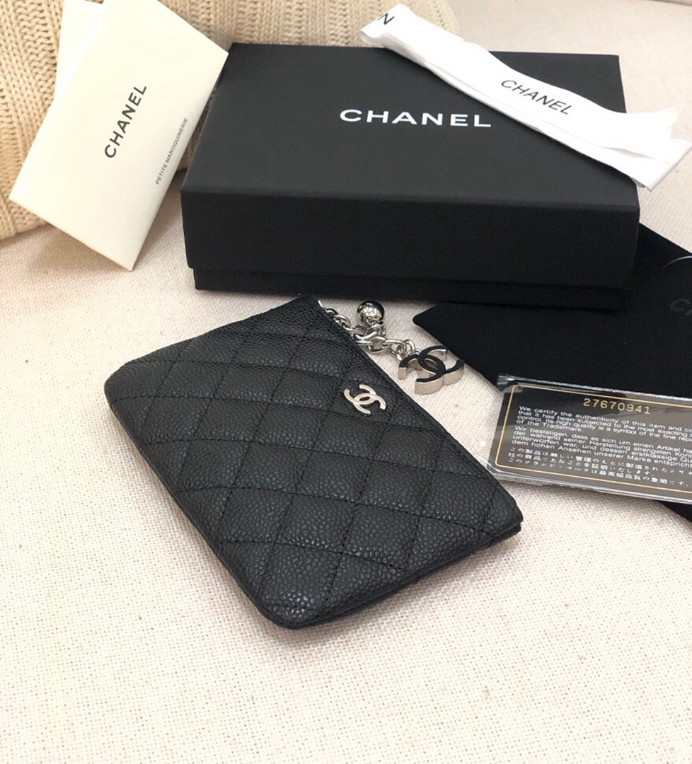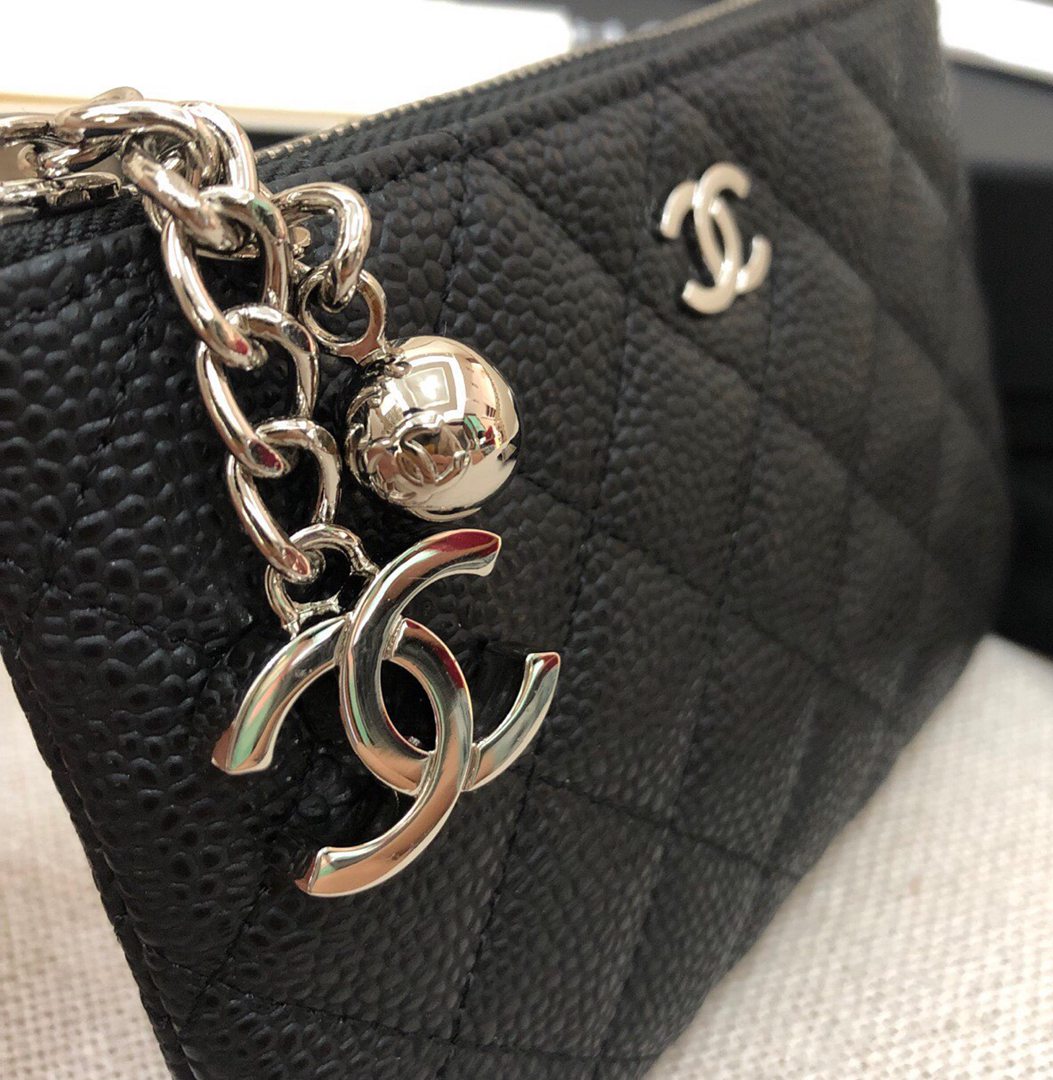 chanel purse silver ball pendant zipper green grained calfskin sliver hardware medium
