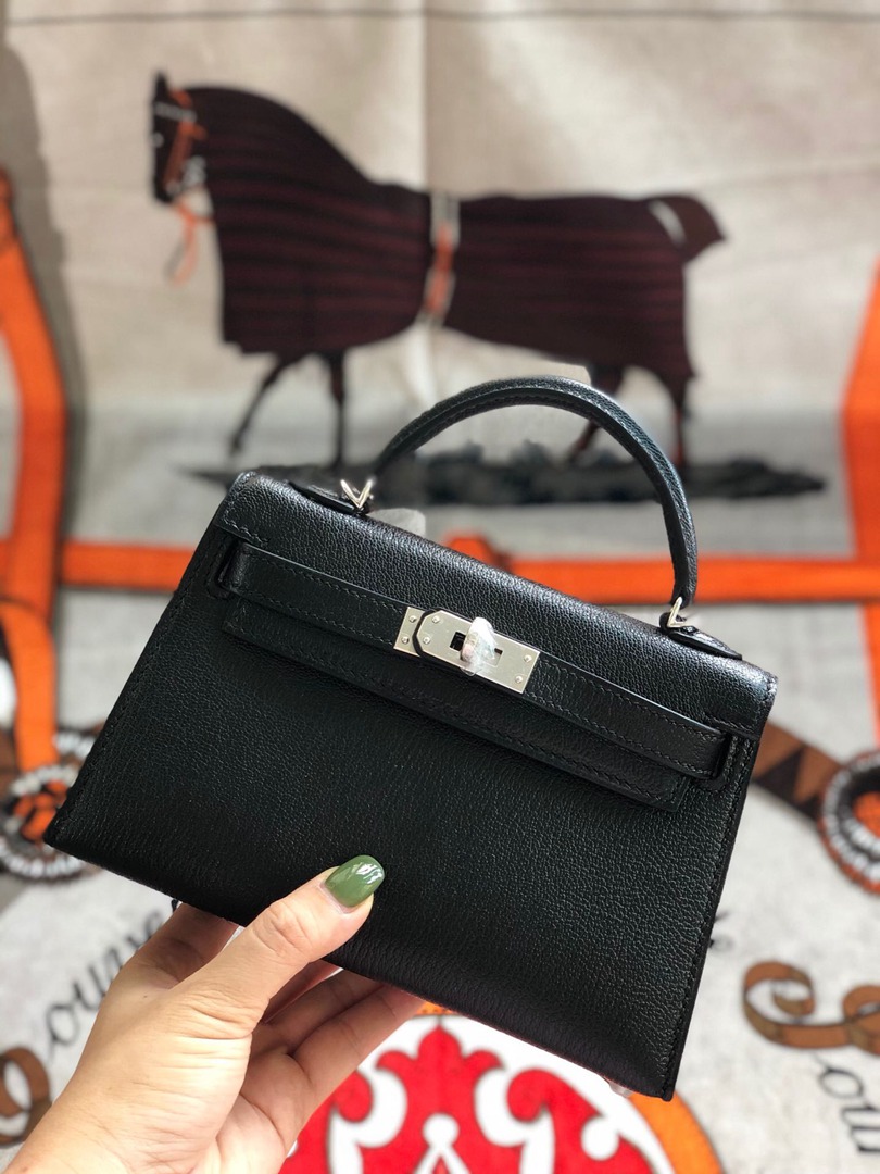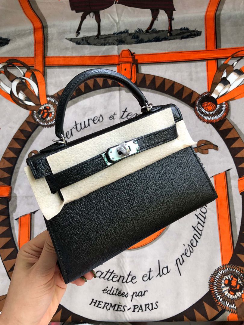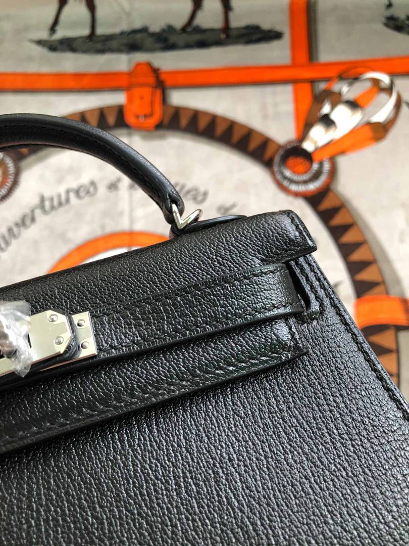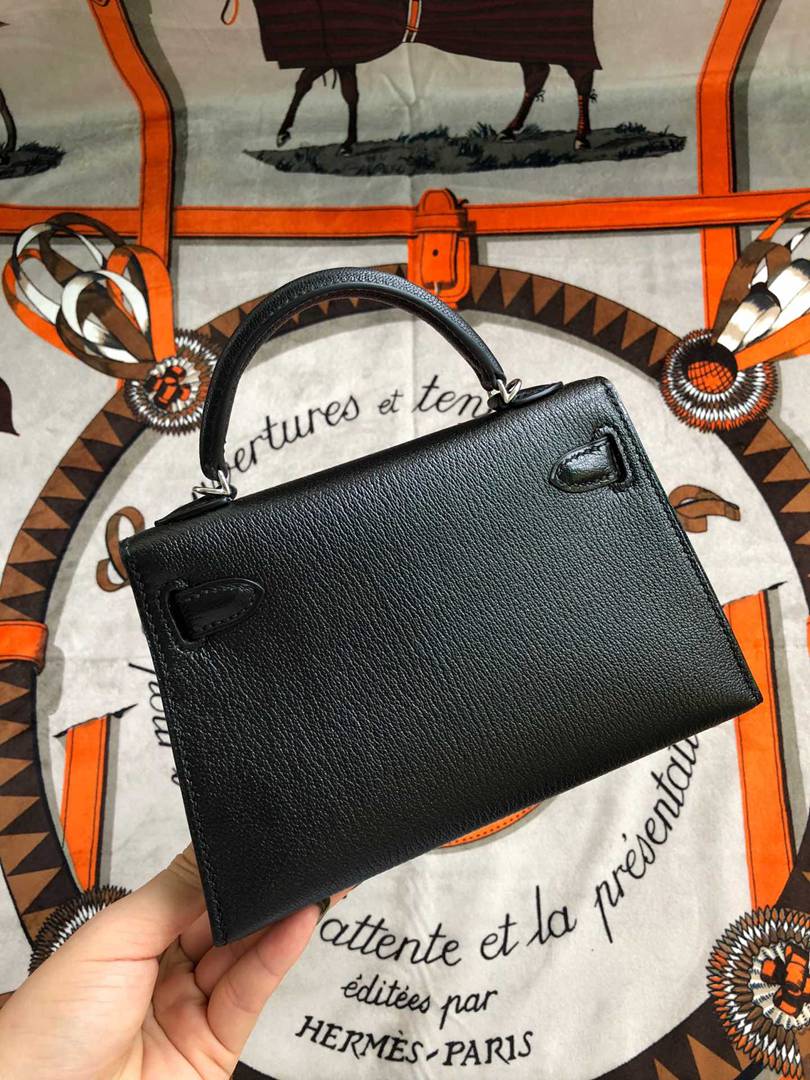 Hermes Mini Kelly II Chevre Handbag in Noir Silver Haredware