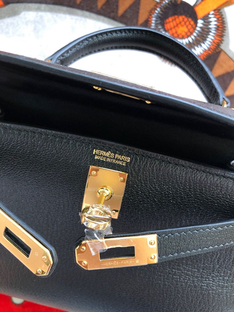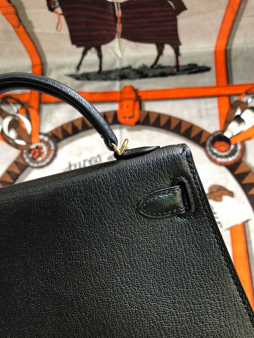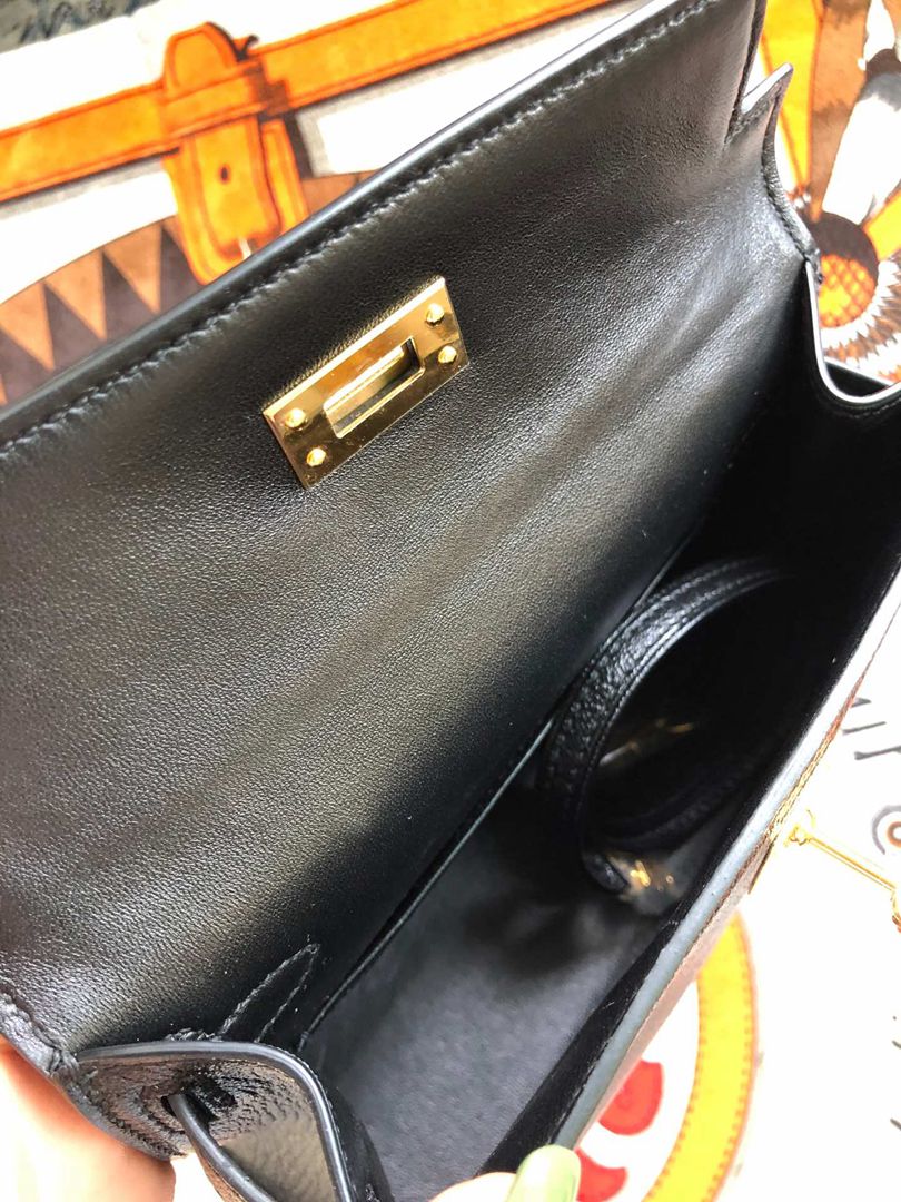 Hermes Mini Kelly II Chevre Handbag in Noir Golden Haredware
