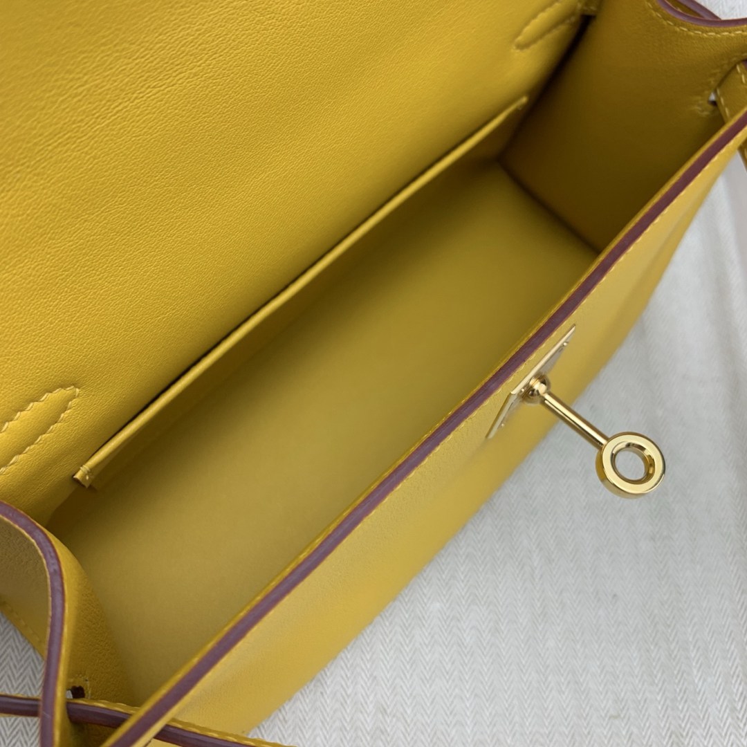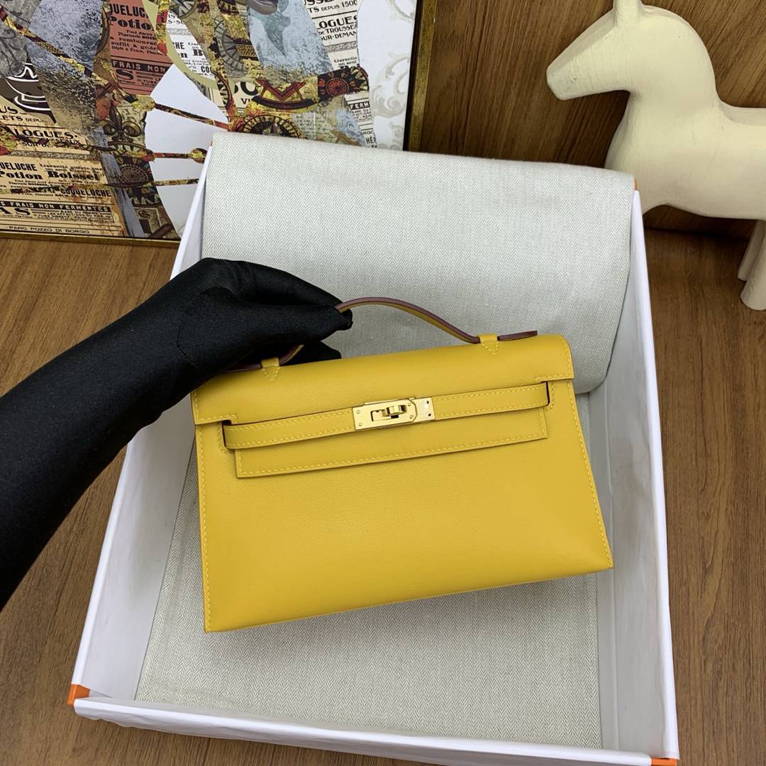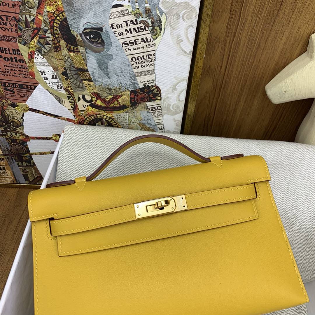 Hermes Kelly Pochette Swift Jaune de naples with Gold Hardware