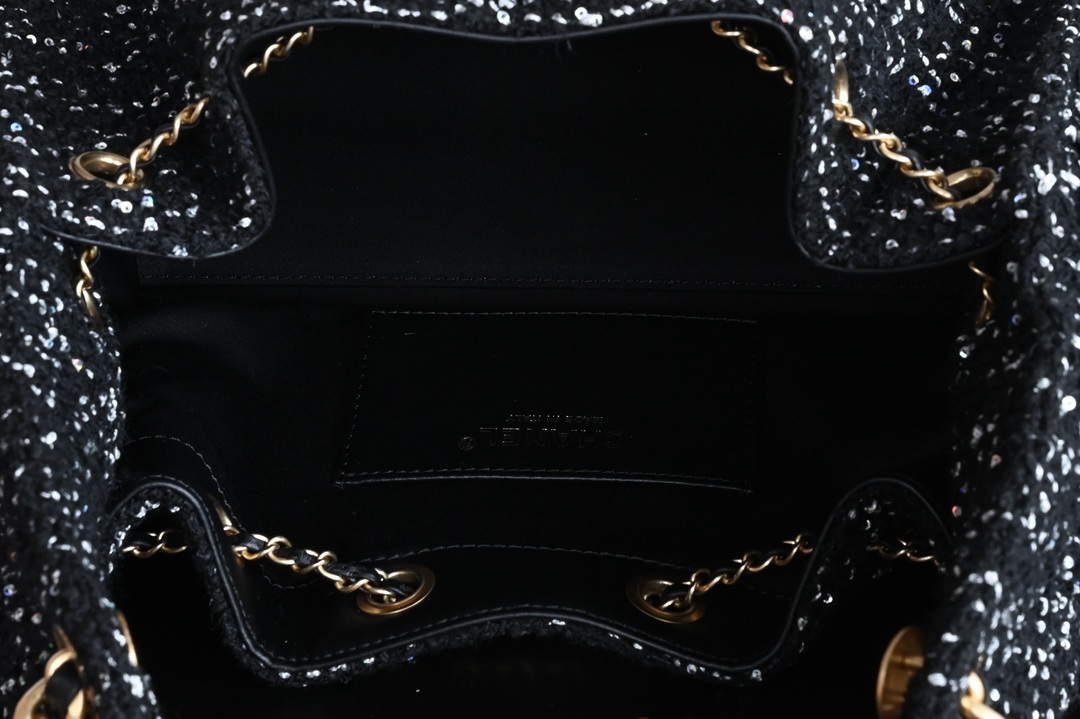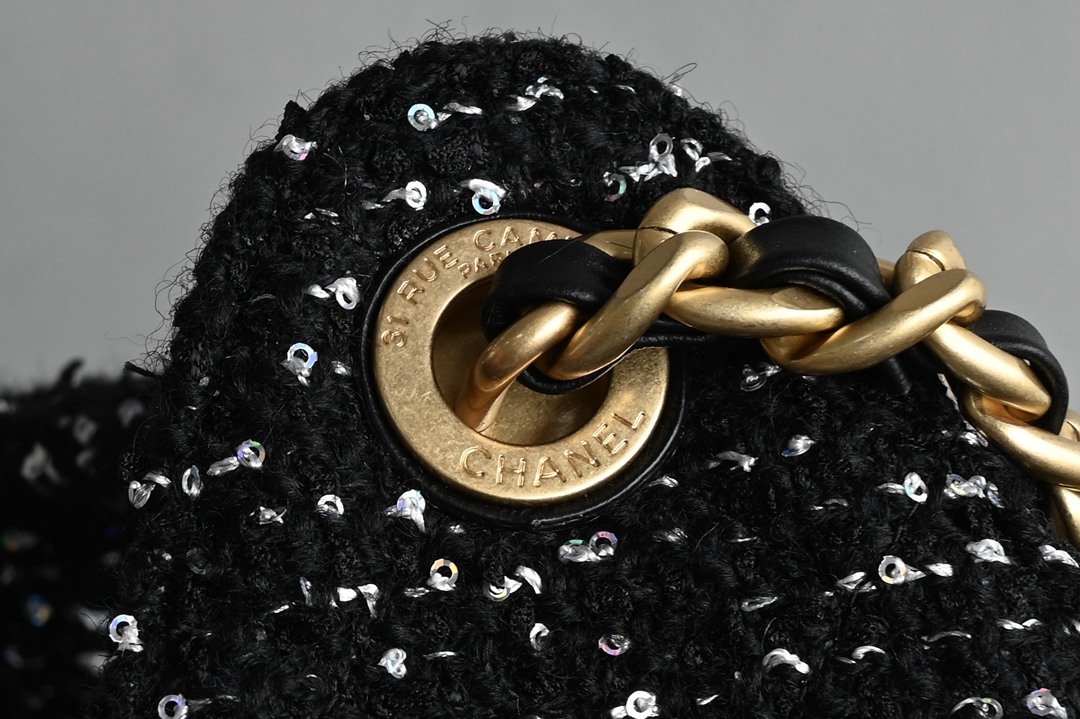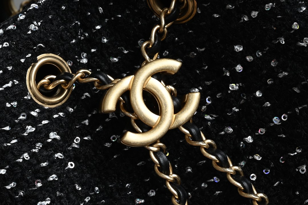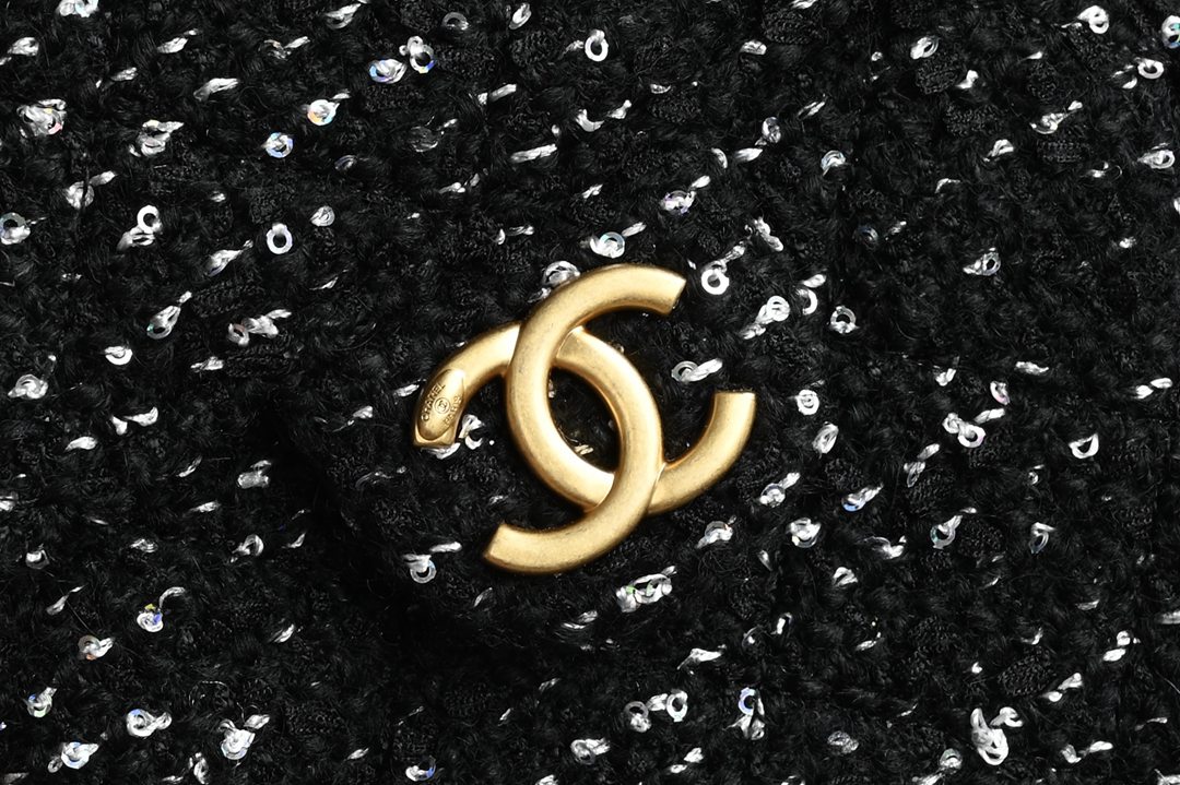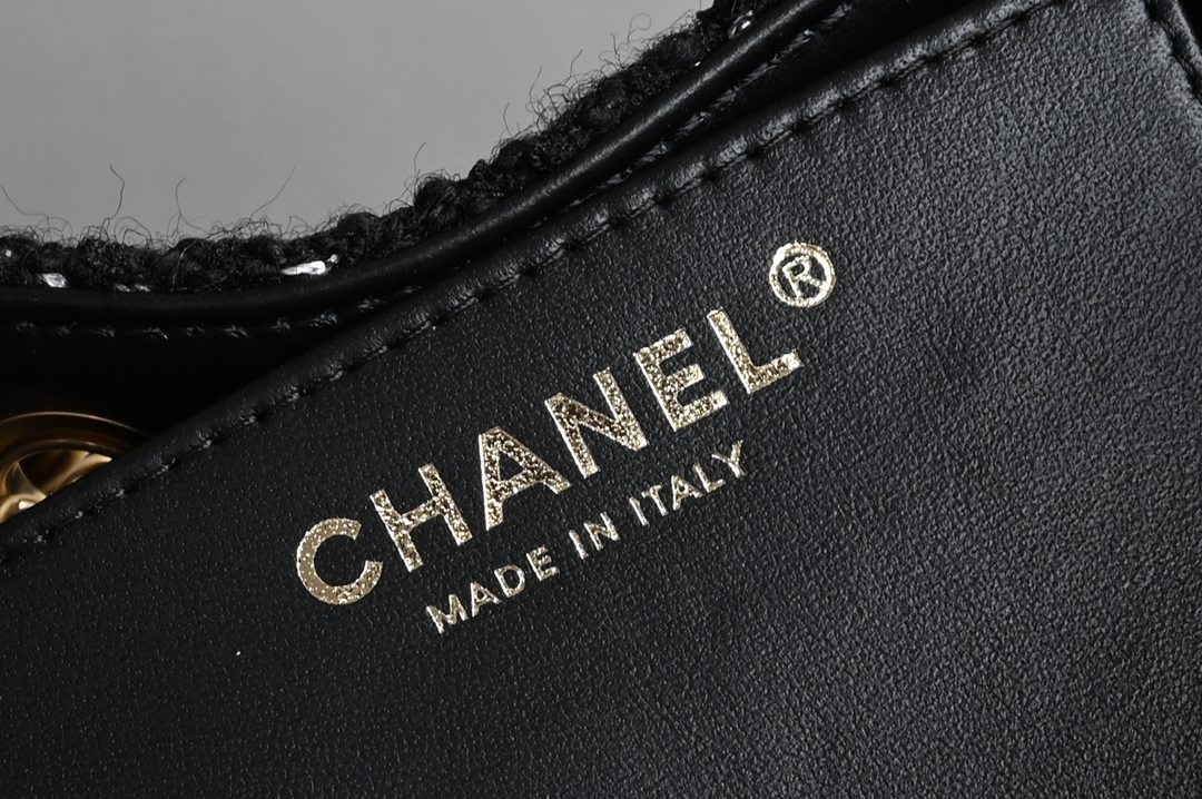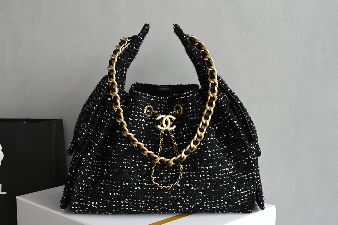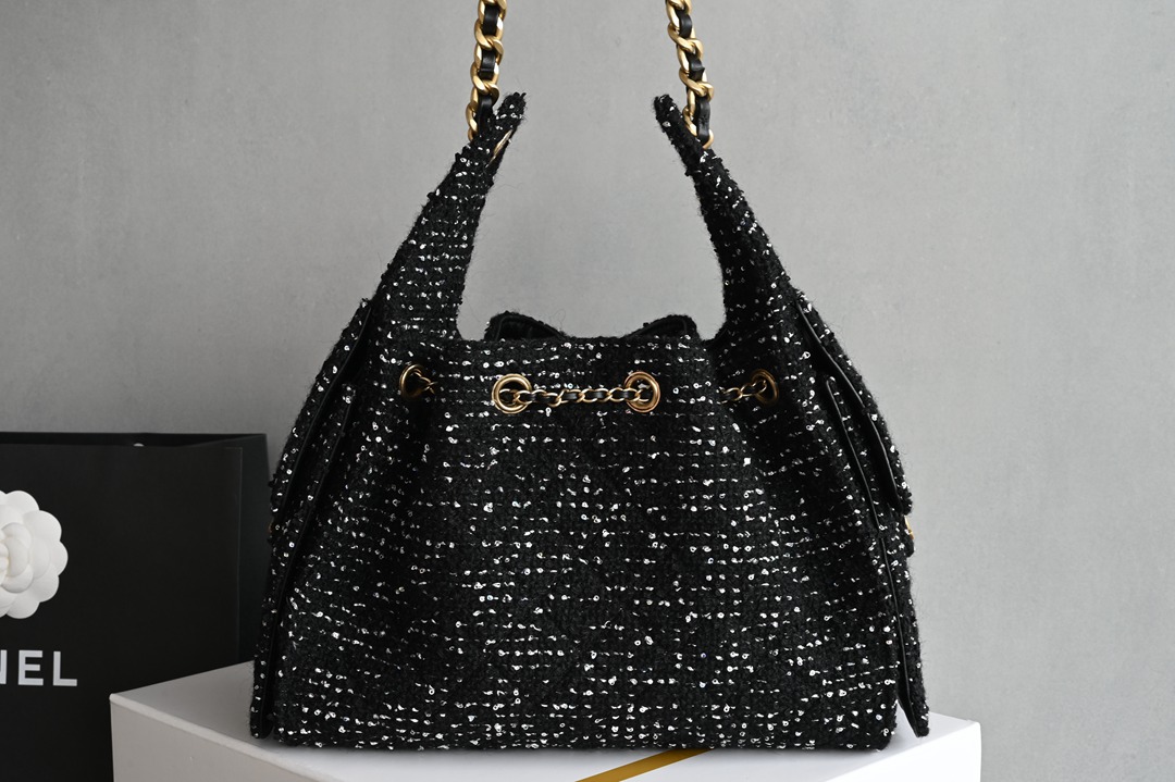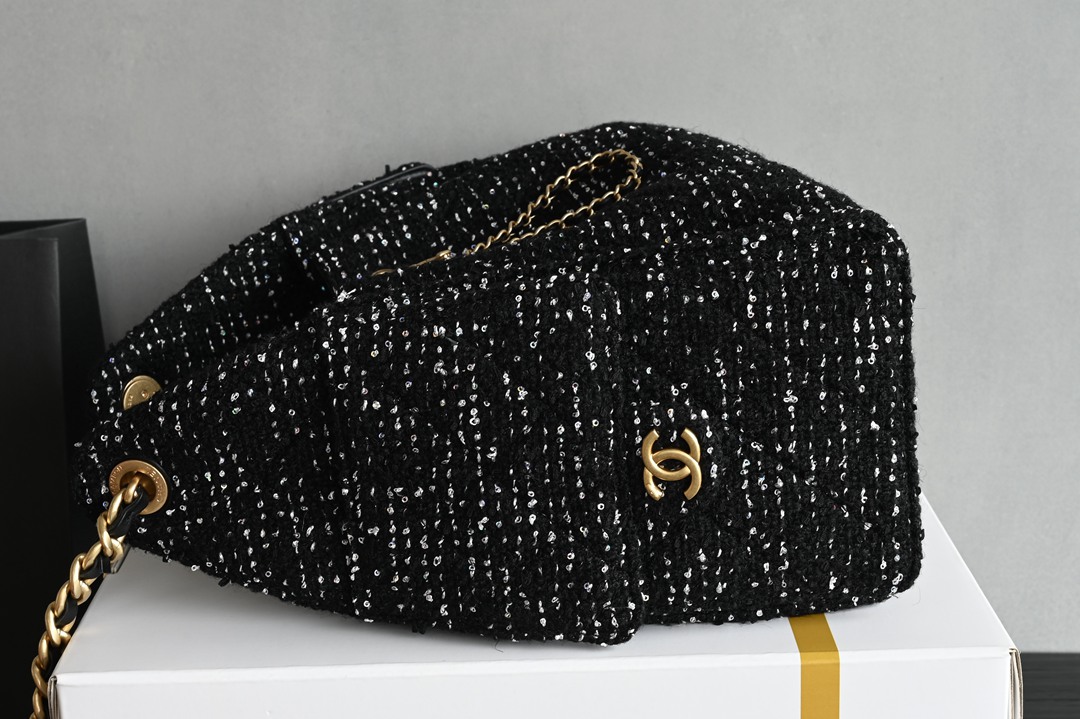 chanel 25B hobo bag black Tweed gold hardware