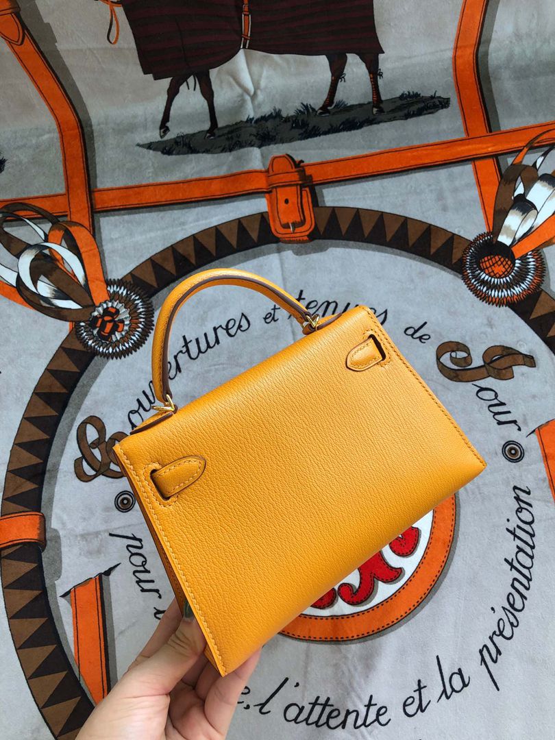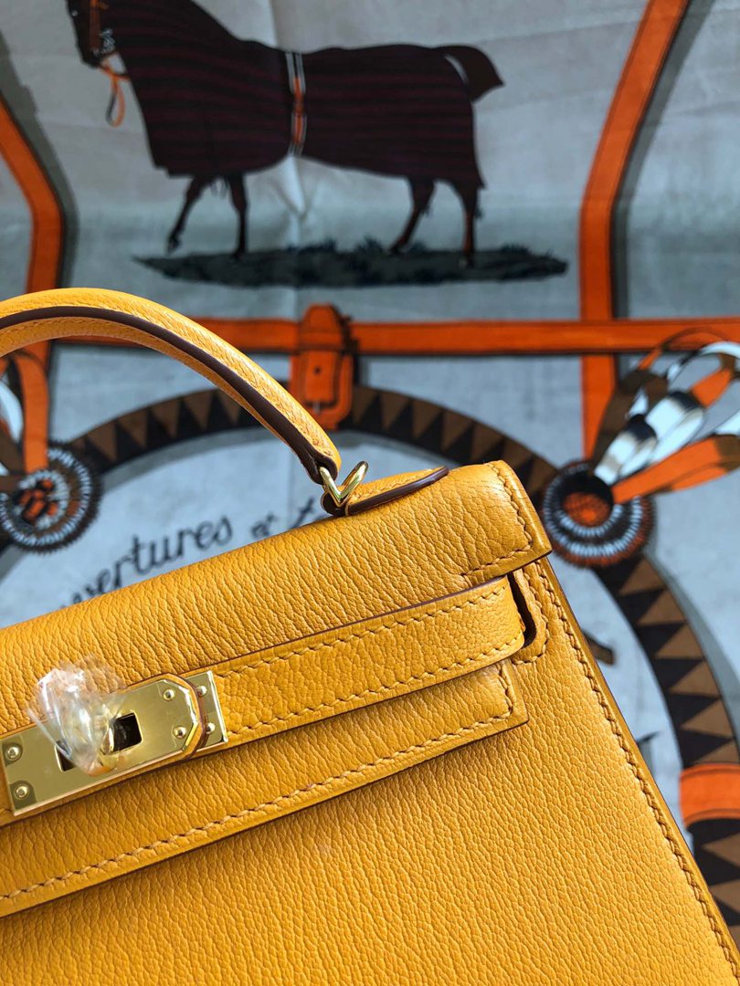 Hermes Mini Kelly II Chevre Handbag in Jaune de naples Golden Haredware