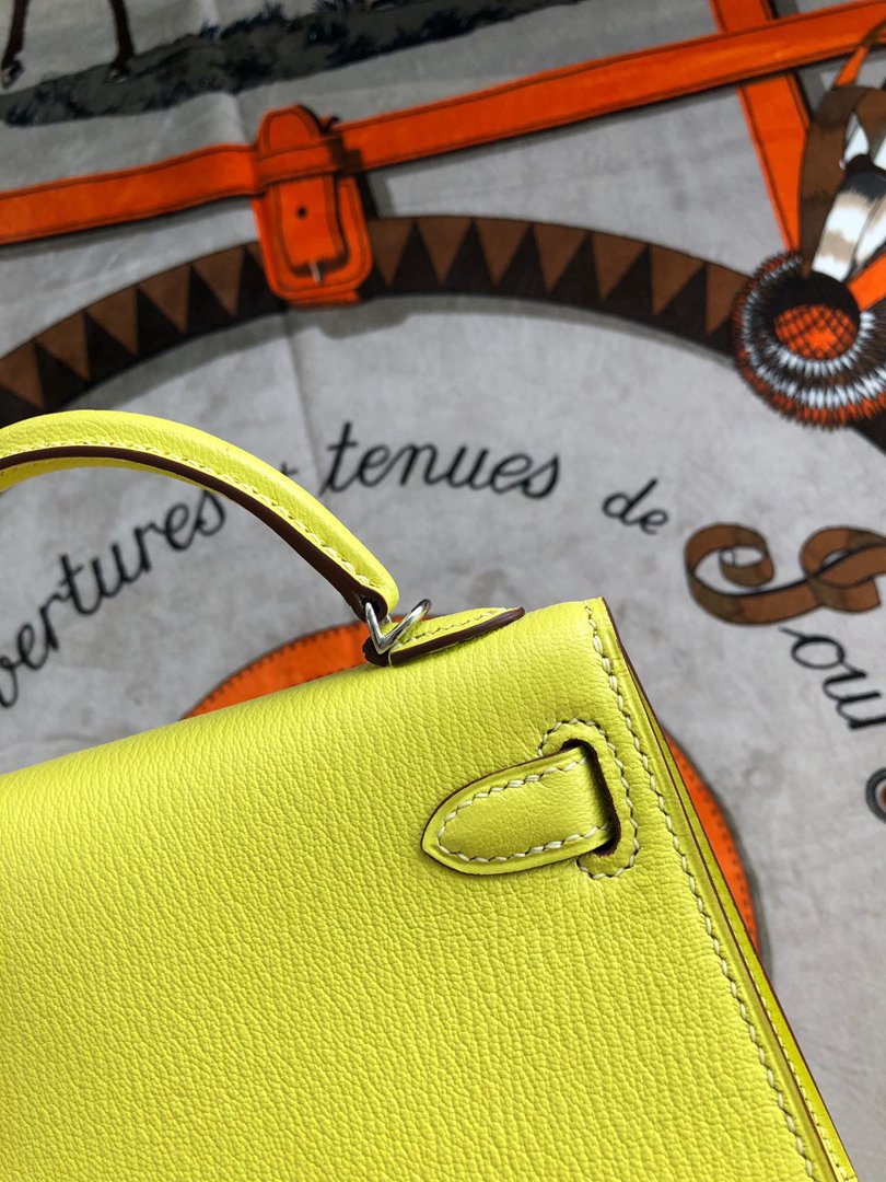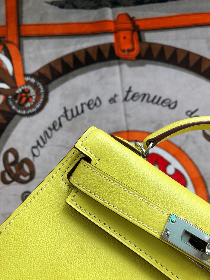 Hermes Mini Kelly II Chevre Handbag in Jaune Citron Silver Haredware