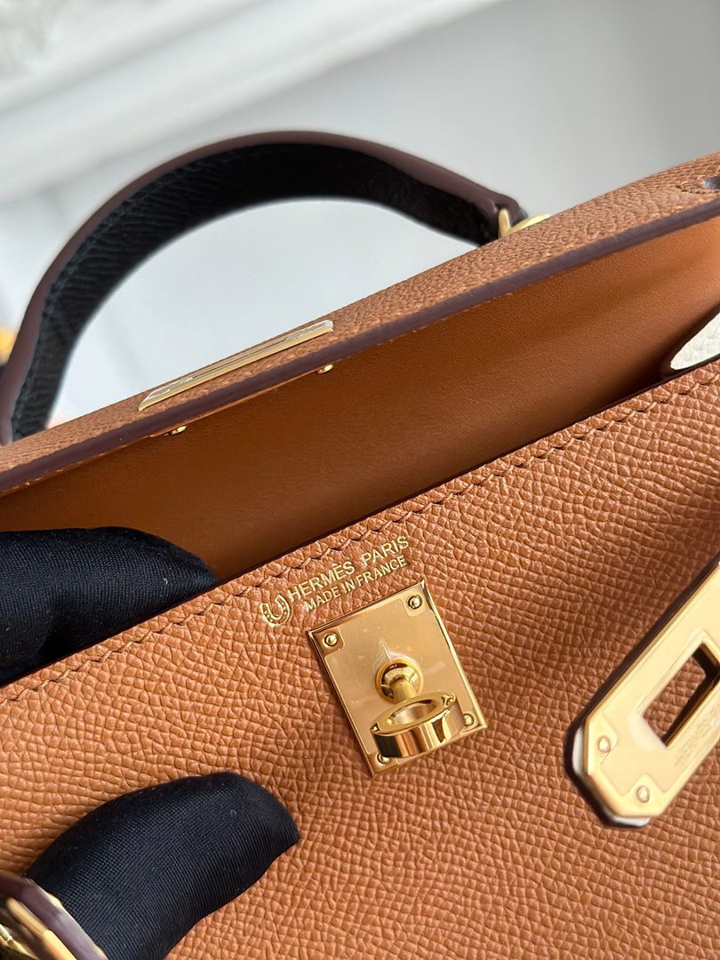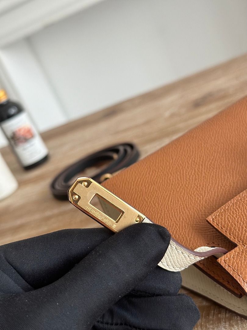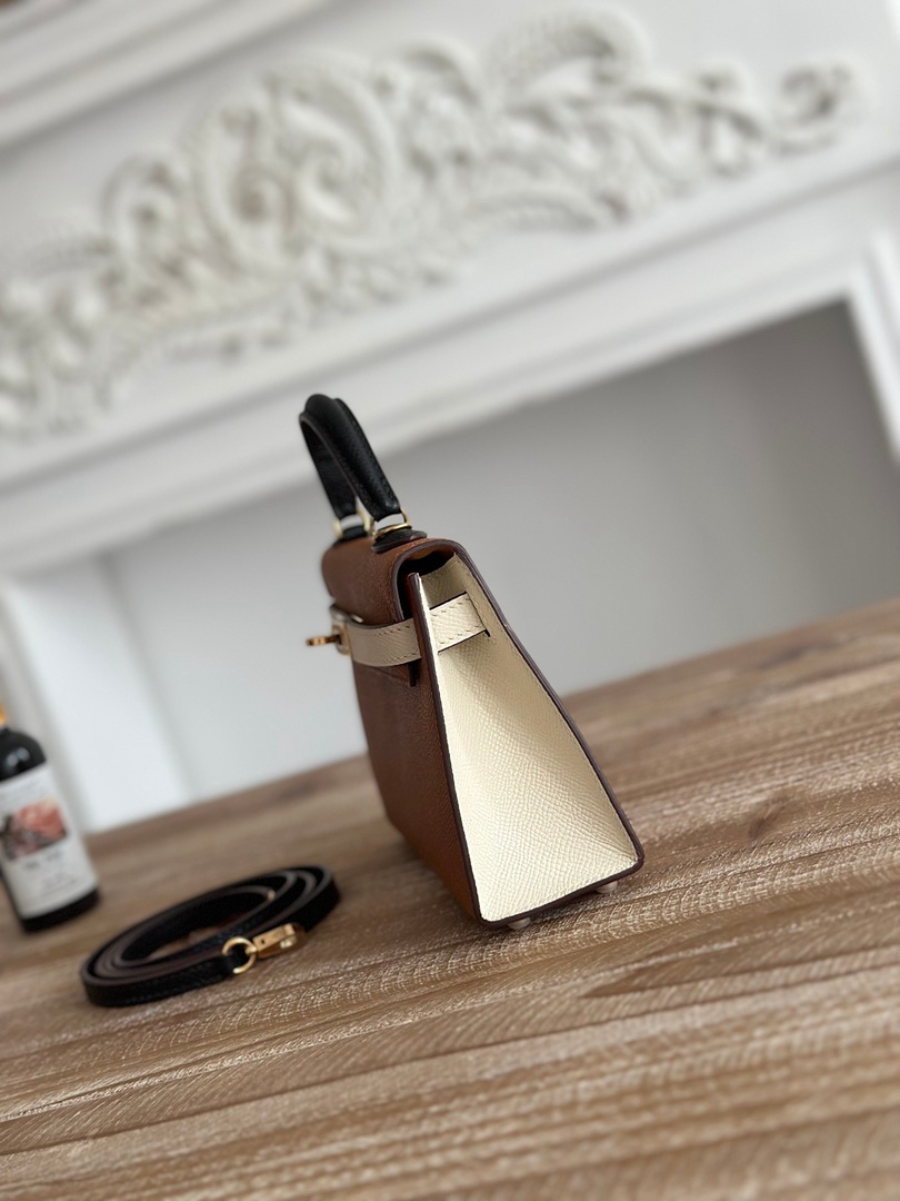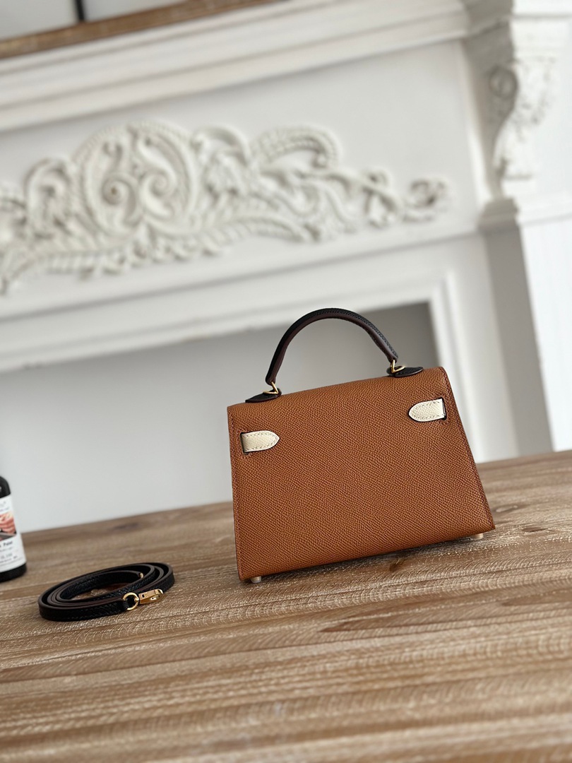 Hermes Mini Kelly II Handbag in Golden Brown and Craie Epsom Leather with Gold Hardware
