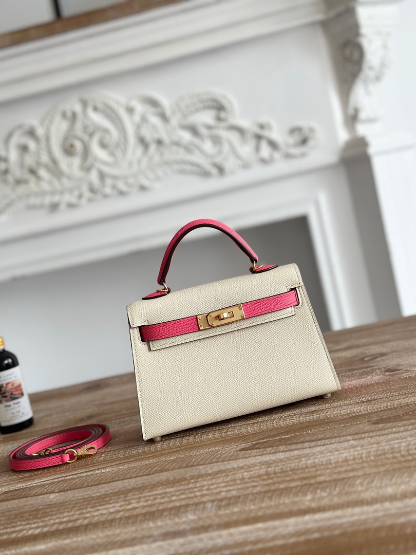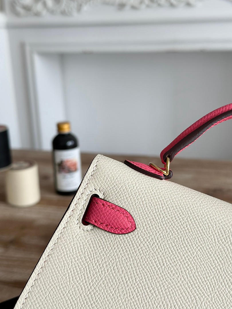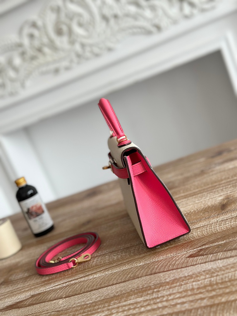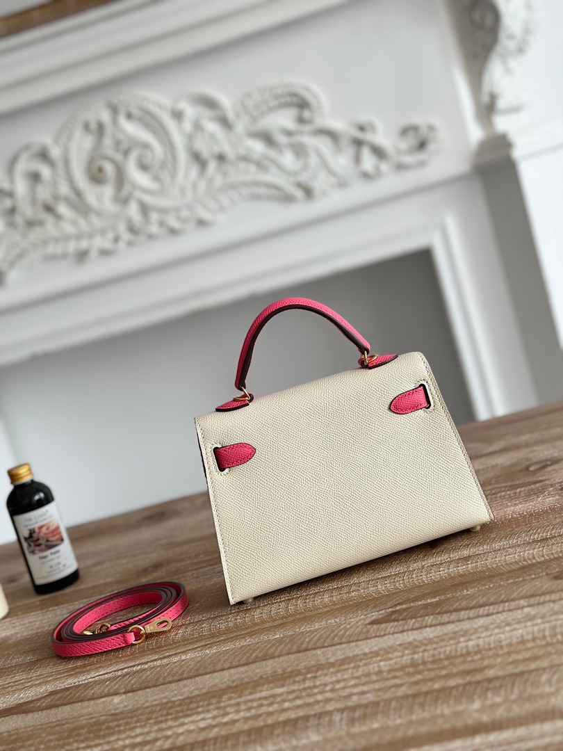 Hermes Mini Kelly II Handbag in Craie and Rose Azalee