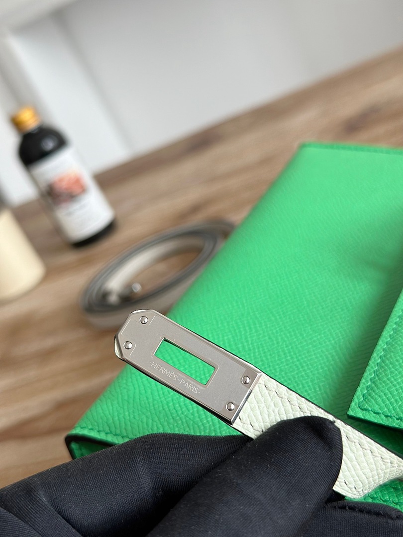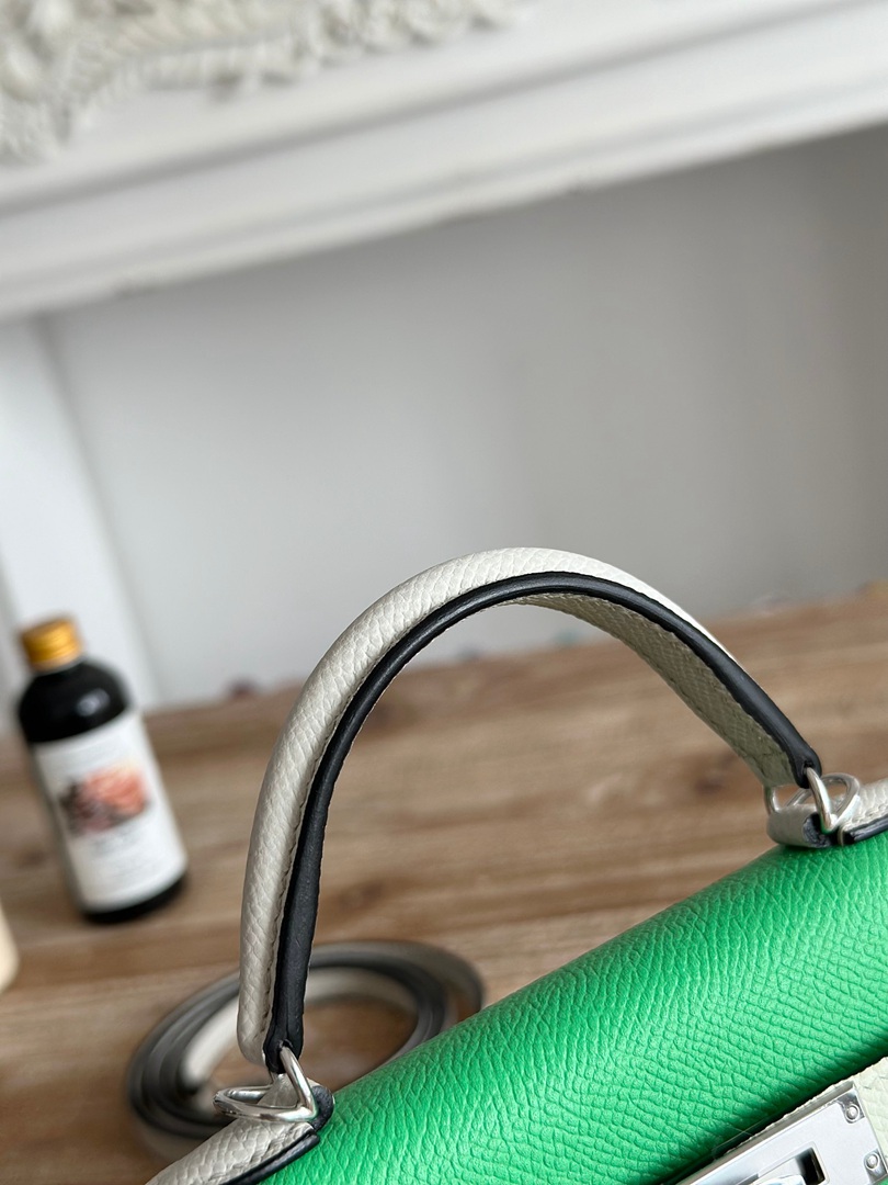 Hermes Mini Kelly II Handbag in Vert Comics and Craie
