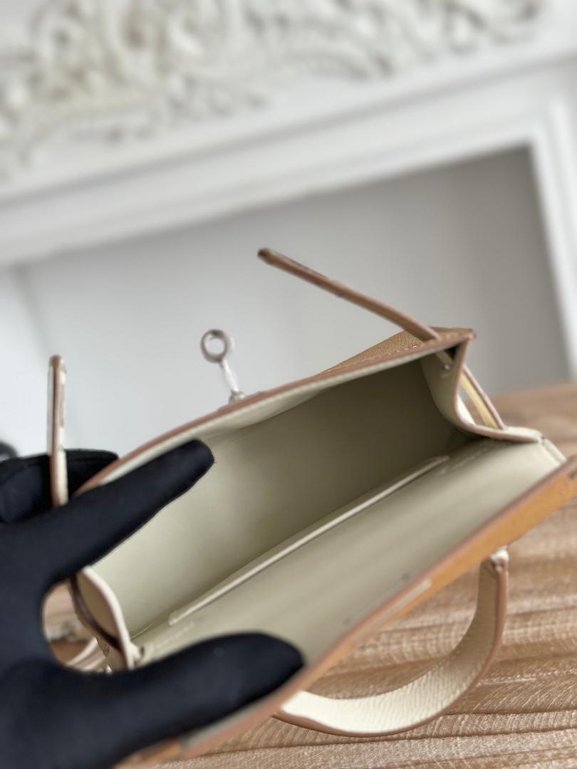Hermes Mini Kelly II Handbag in Biscuit and Craie