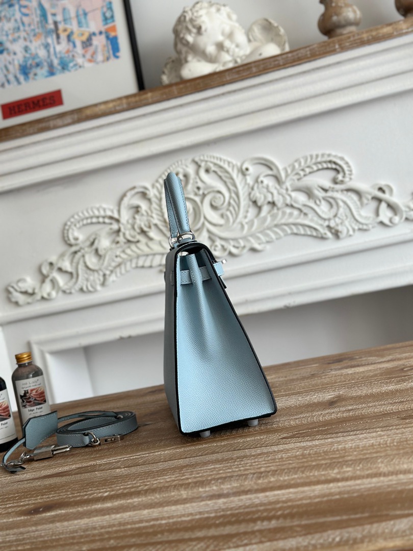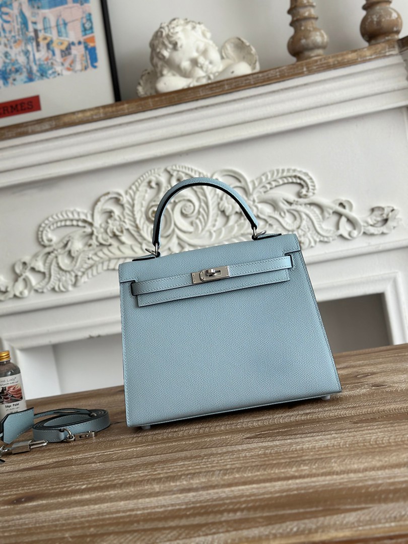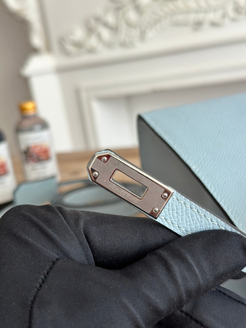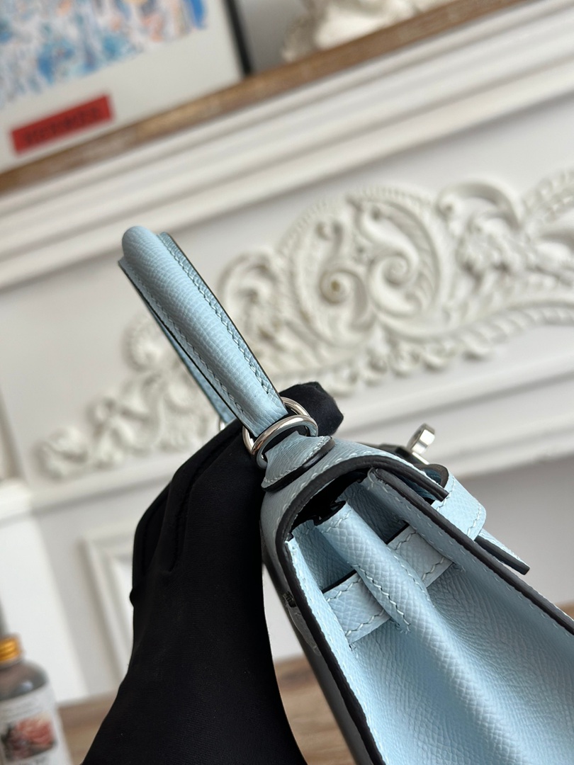 Hermes Mini Kelly II Epsom Handbag in Blue pale Silver Hardware