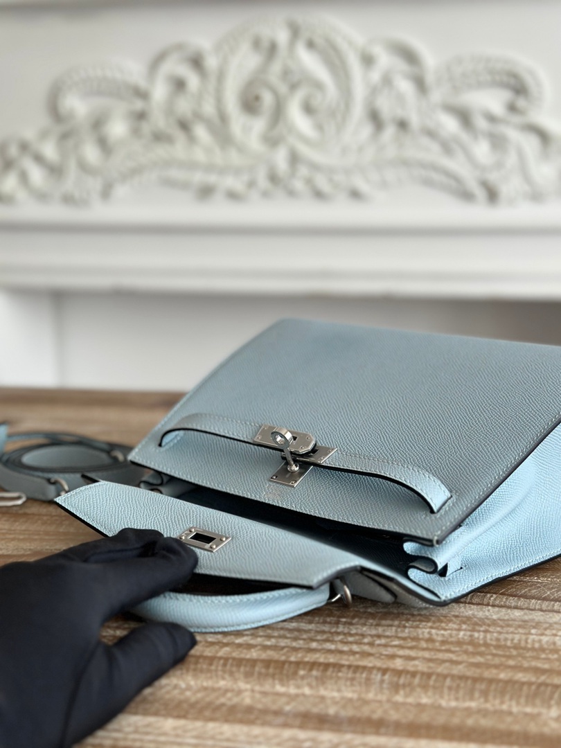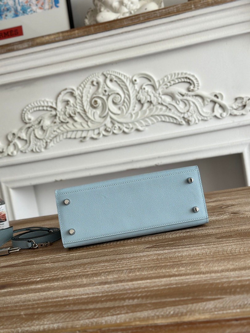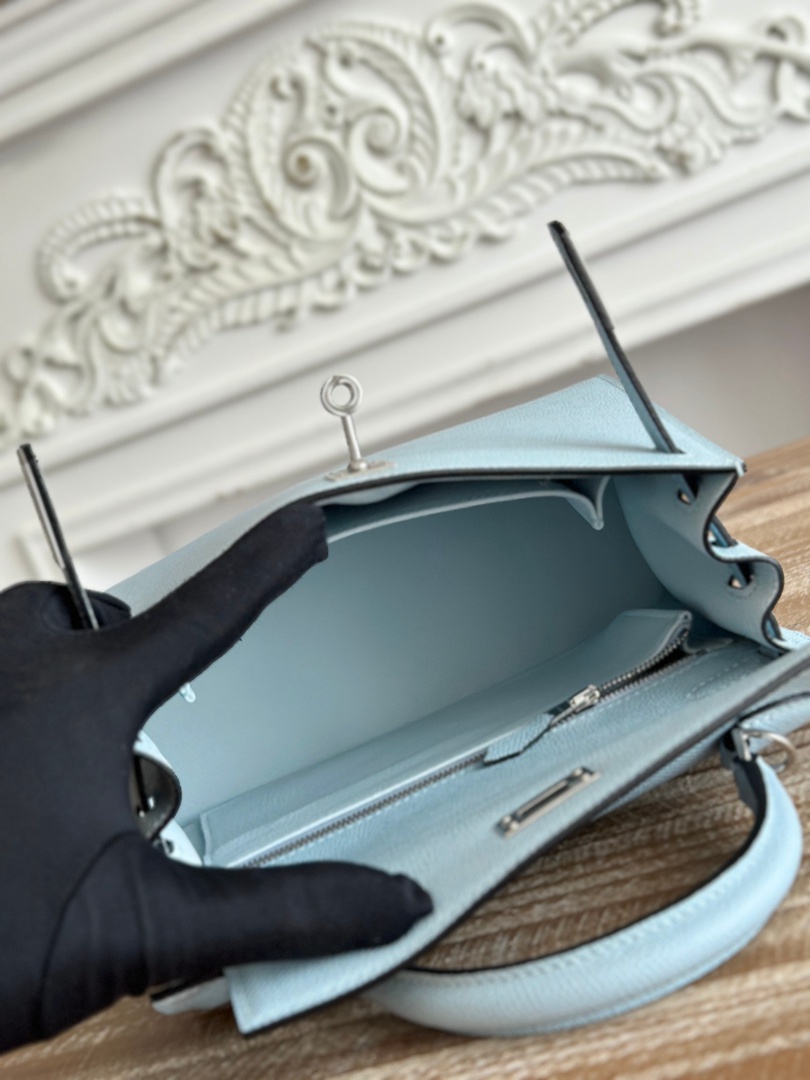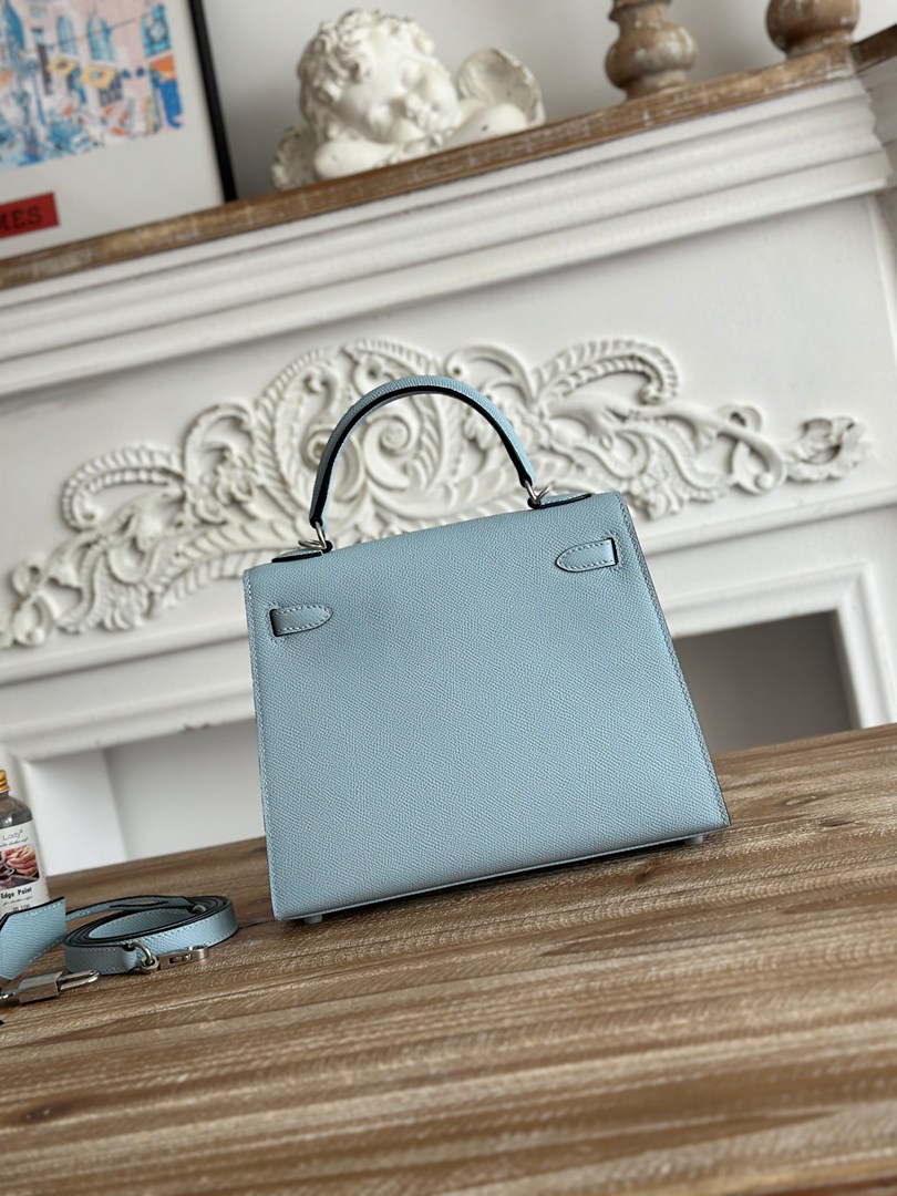 Hermes Mini Kelly II Epsom Handbag in Blue pale Silver Hardware