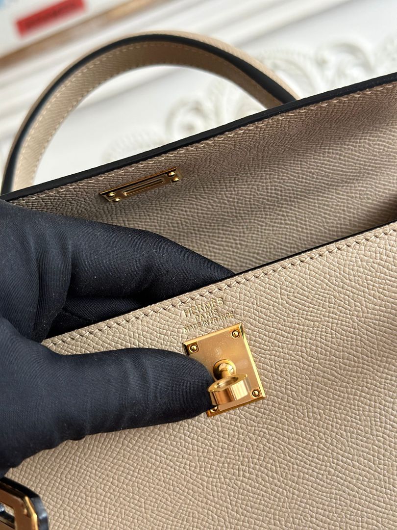 Hermes Mini Kelly II Handbag in Golden Brown Mauve Pale and Craie$798.00 $389.00