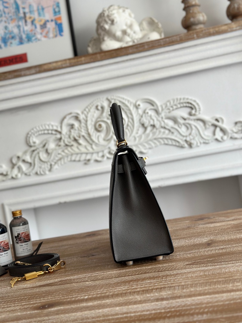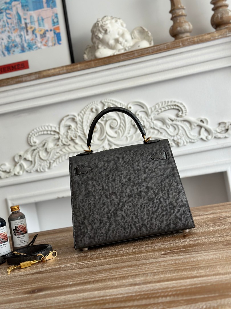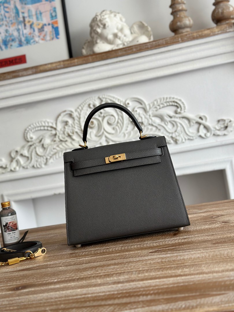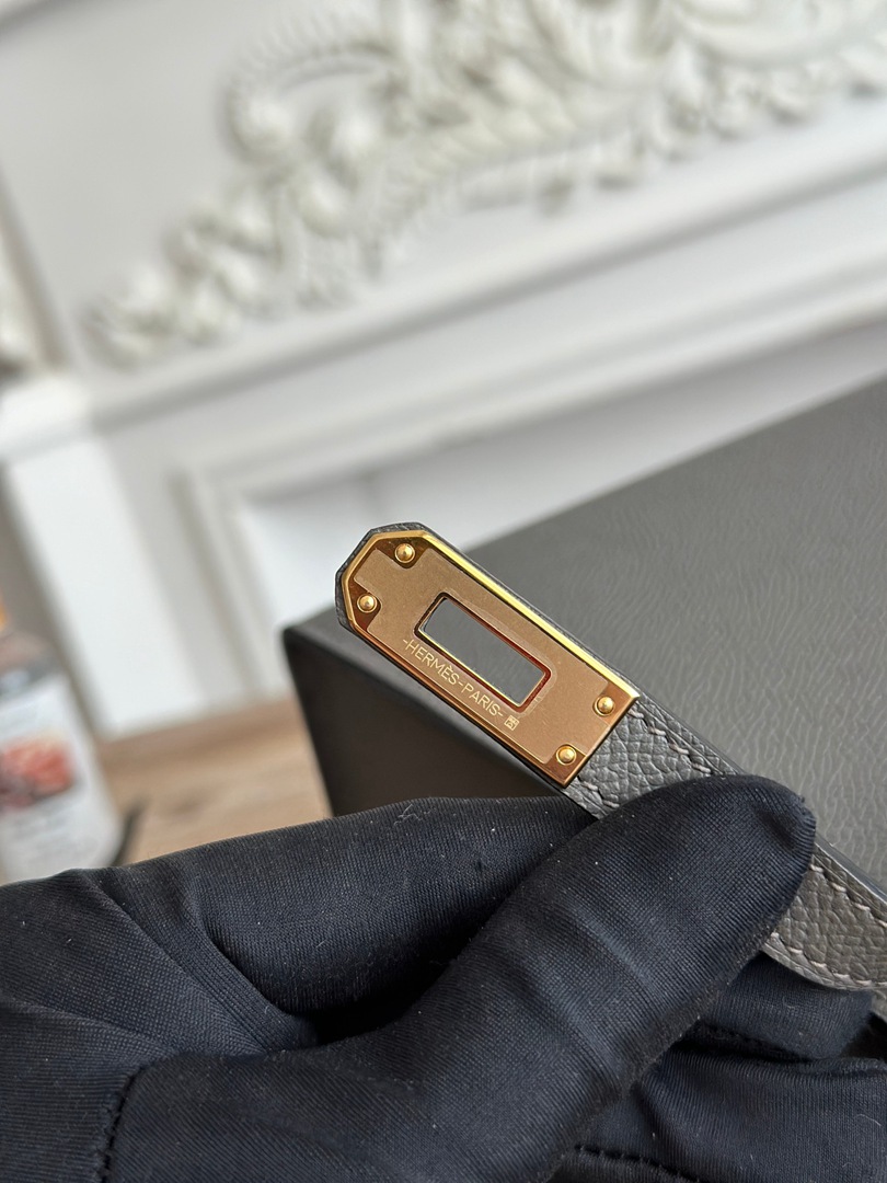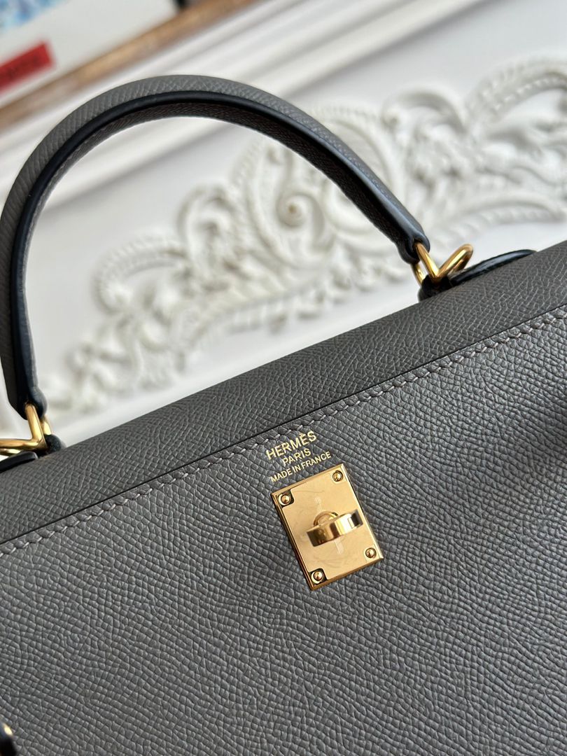 Hermes Mini Kelly II Epsom Handbag in Gris Mouette Golden Hardware