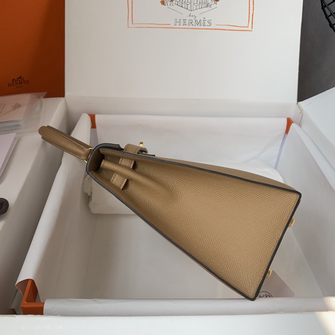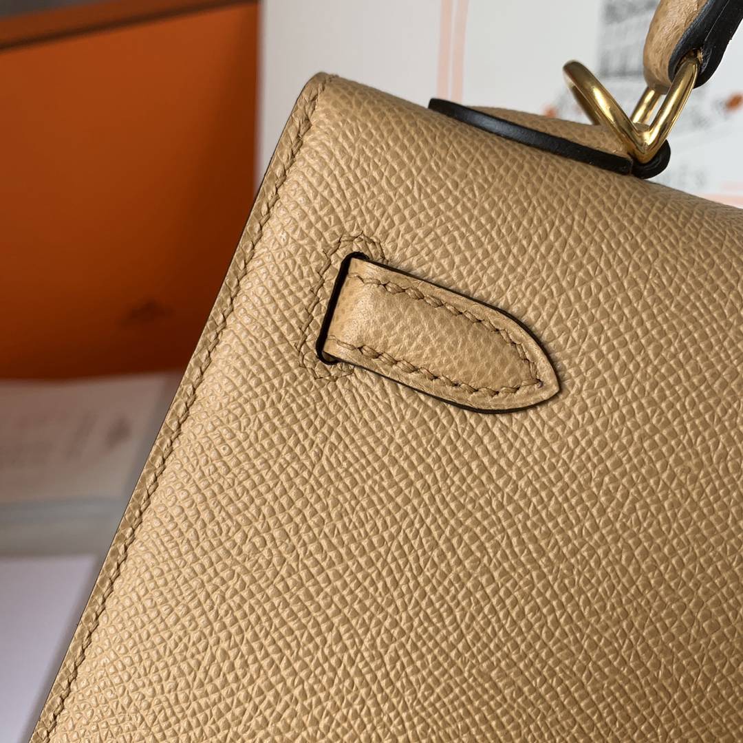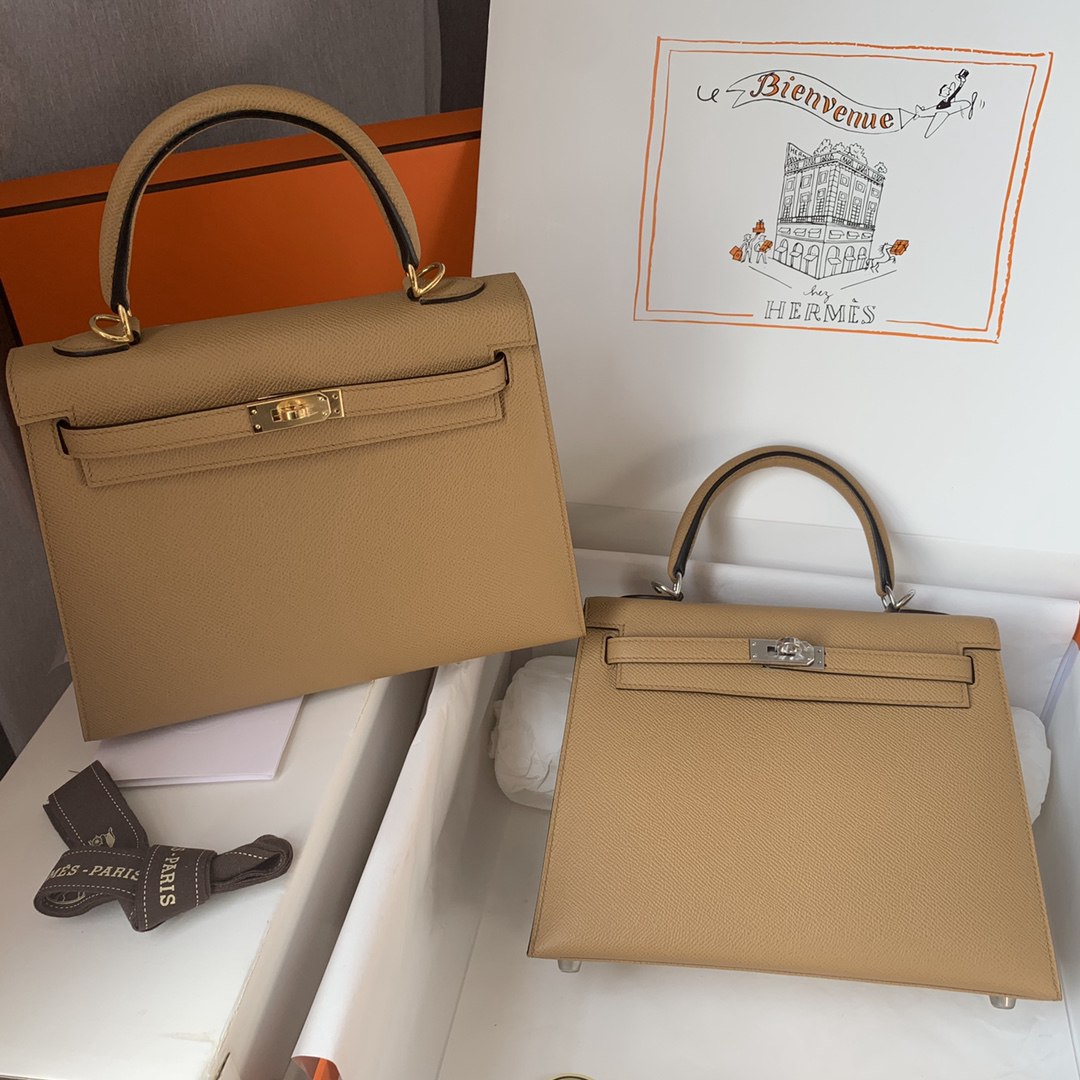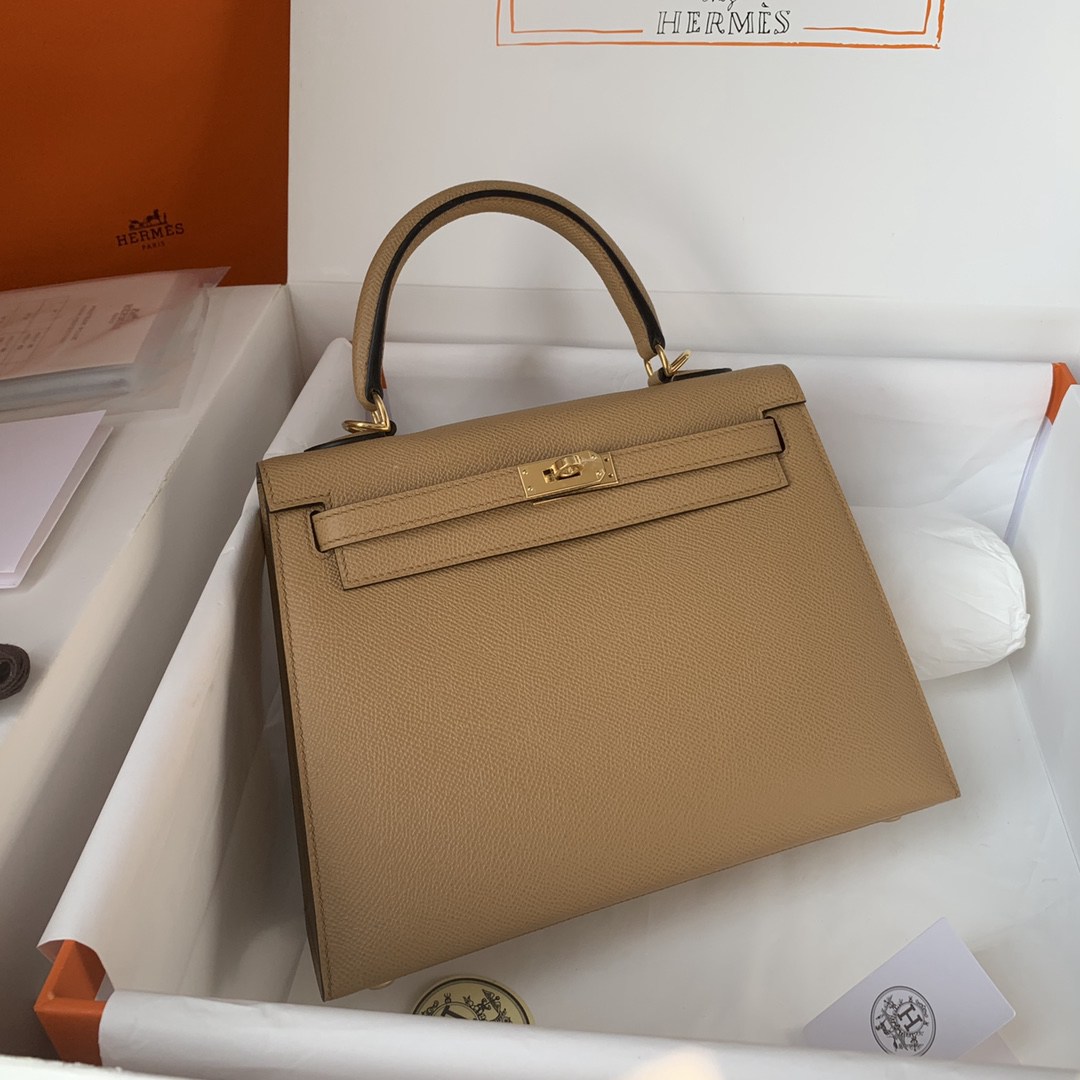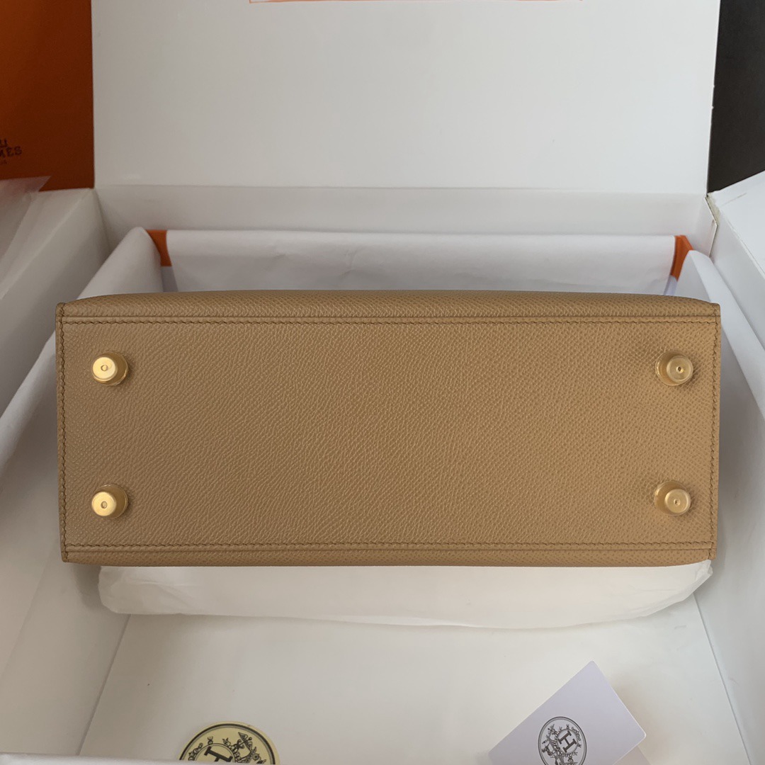 Hermes Epsom Kelly Sellier 25 Handbag in Chevre Gold