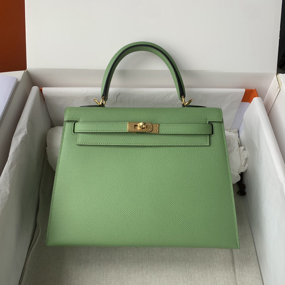 Hermes Epsom Kelly Sellier 25 Handbag in Avocado Green