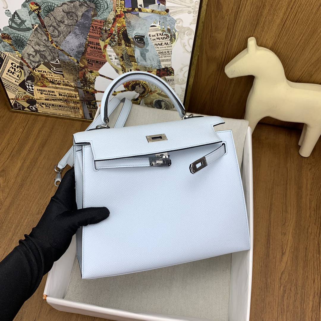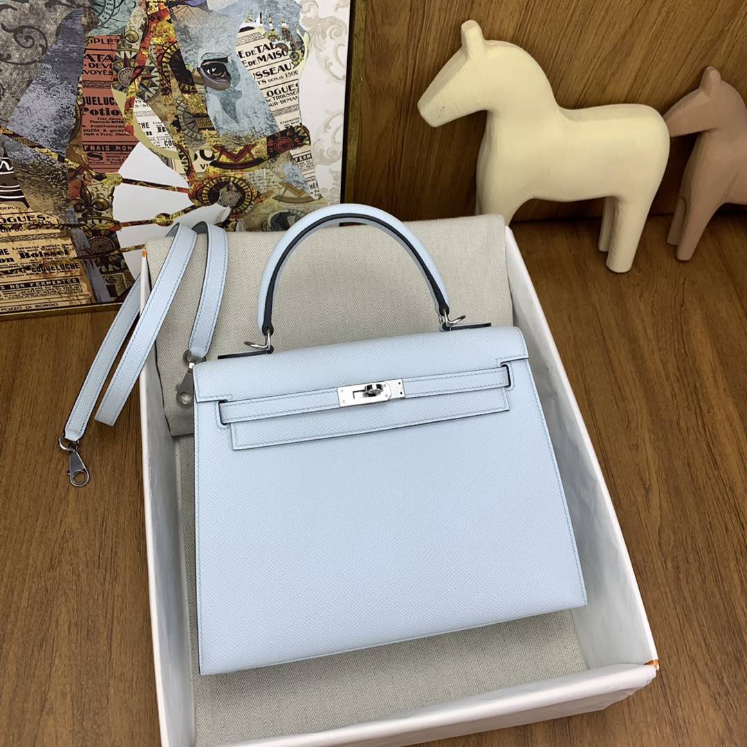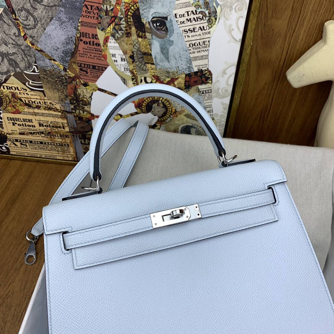 Hermes Kelly 25 Epsom Handbag in Celeste