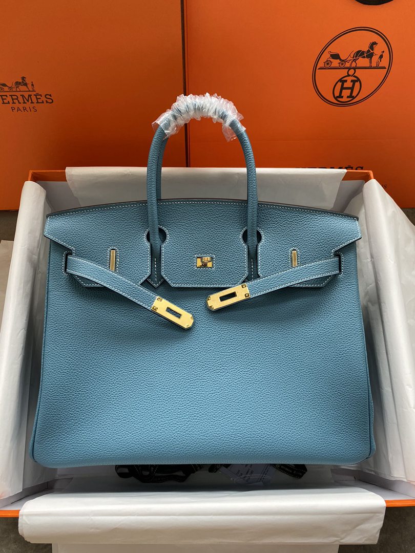 Hermes Birkin 25 30 35 Togo Handbag in Bleu Jean