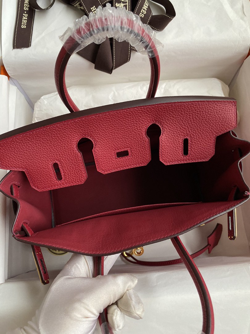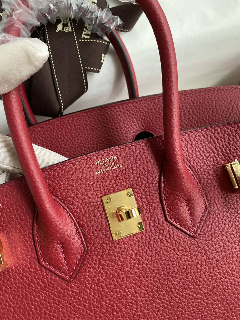 Hermes Birkin 25 30 35 Togo Handbag in Rouge Grenat