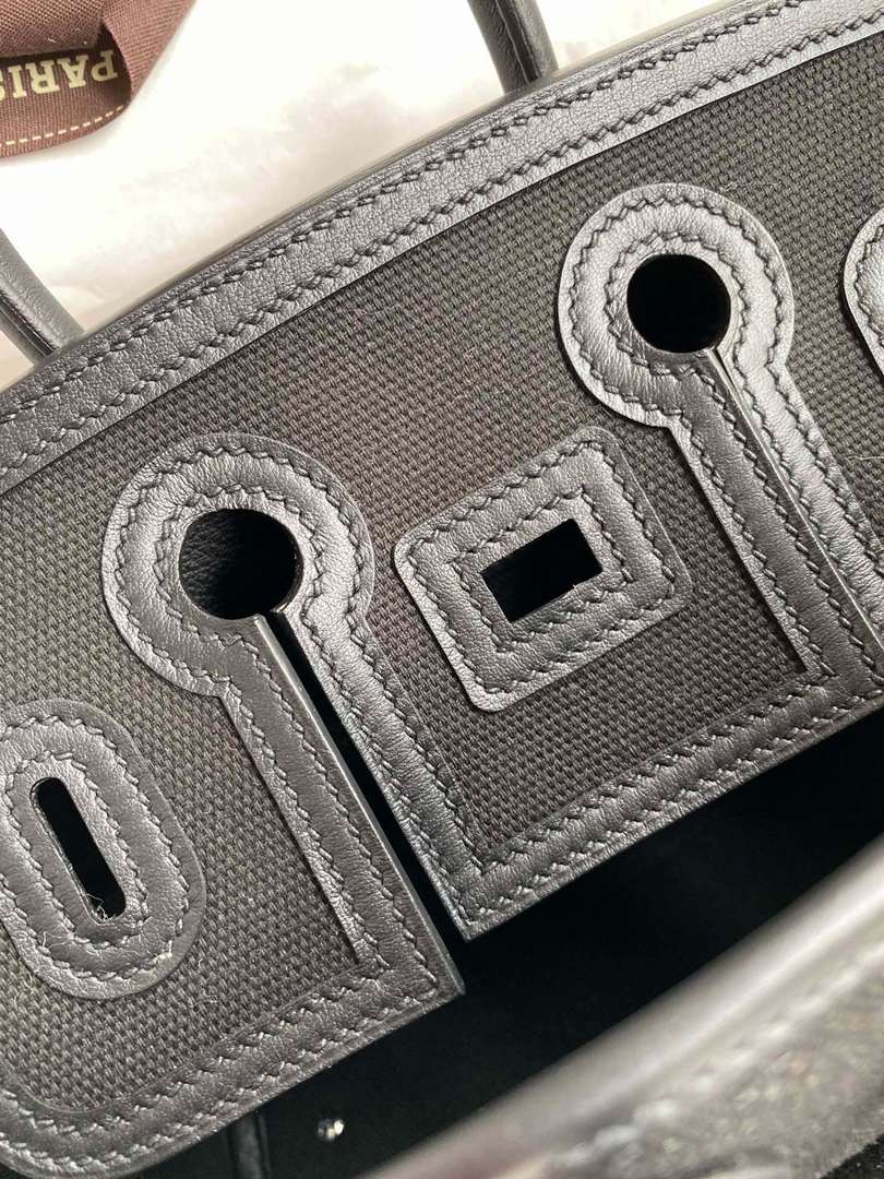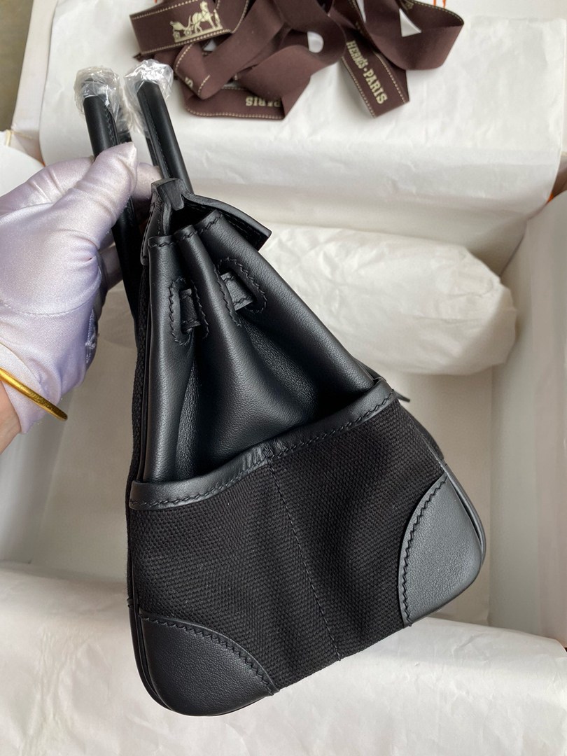 Hermes Birkin Cargo HAC 25 Black Canvas & Box Calf Palladium Hardware