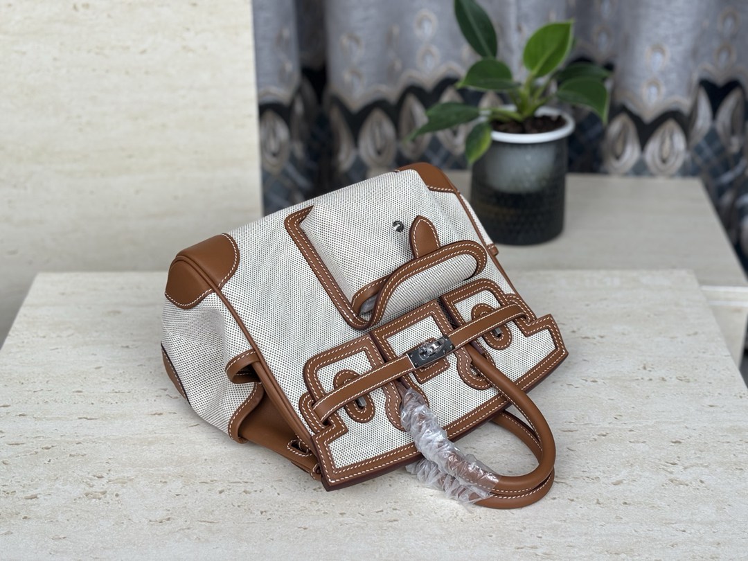 Hermes Birkin Cargo HAC 25 Craie Canvas & Brown Box Calf Palladium Hardware