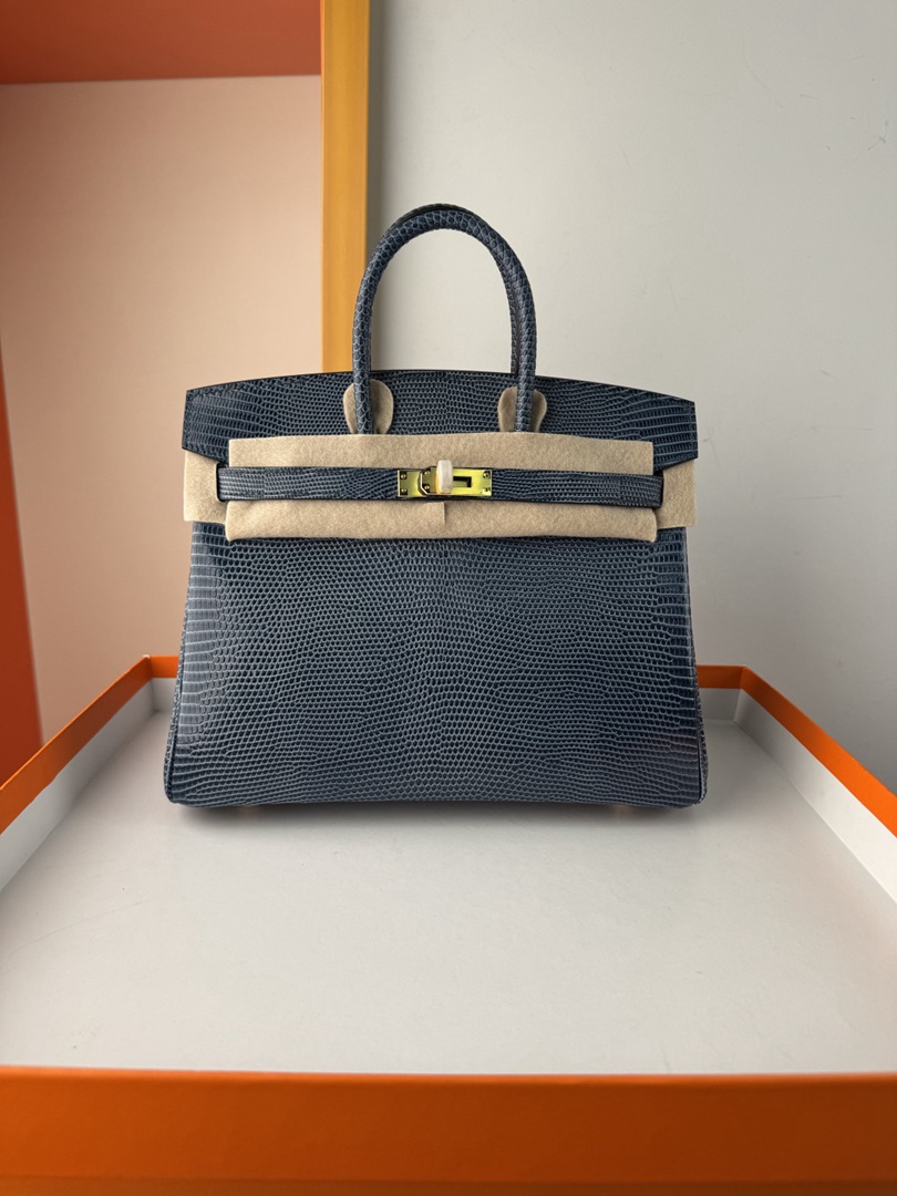 Hermes Birkin 25 Lizard Handbag in Blue Saphir