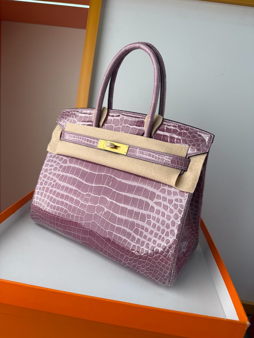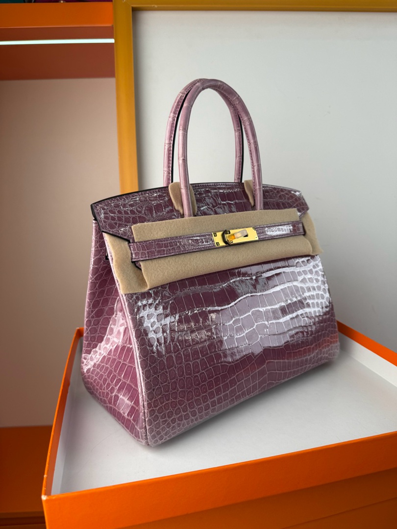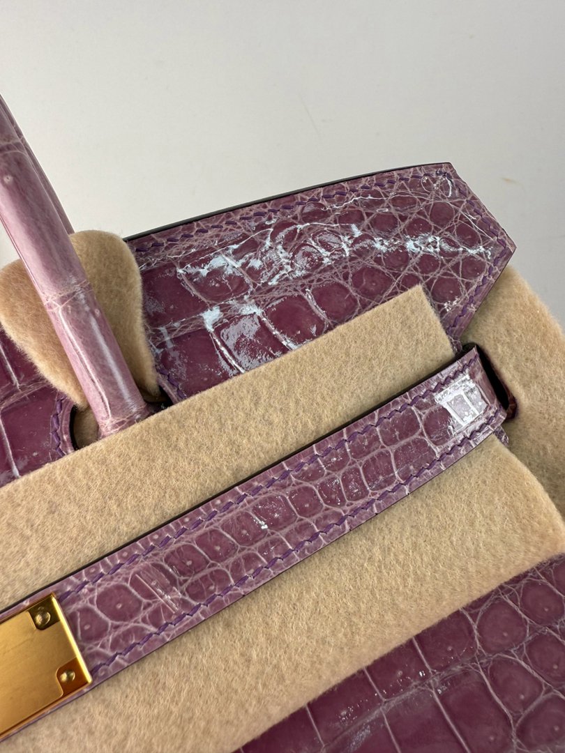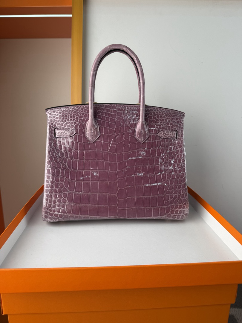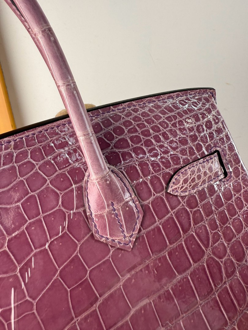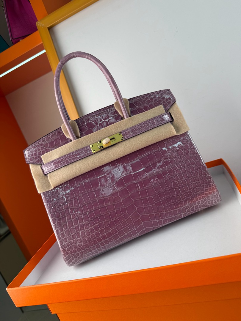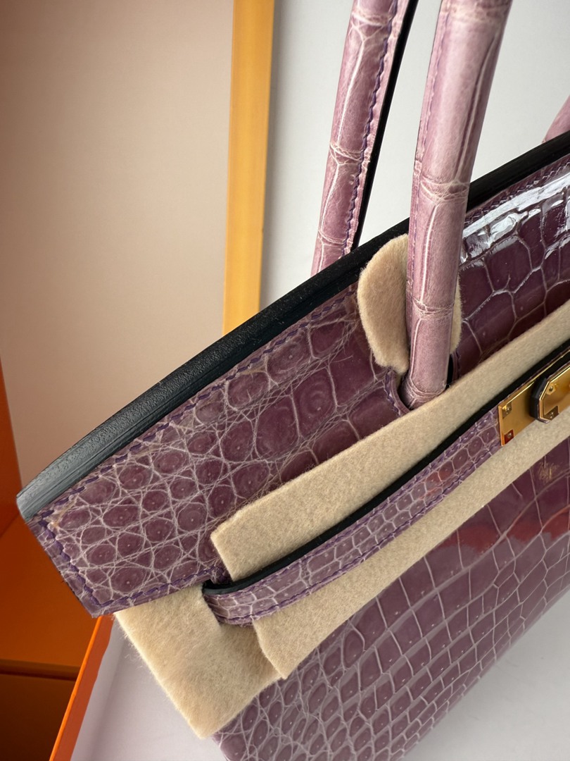 Hermes Birkin 25 Shiny Alligator Crocodile Handbag in Glycine