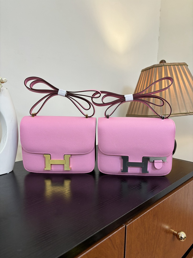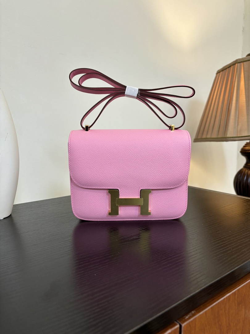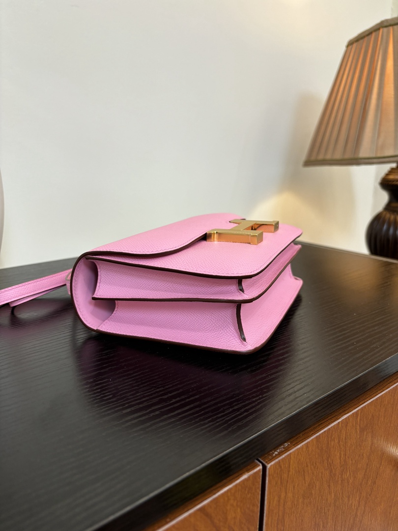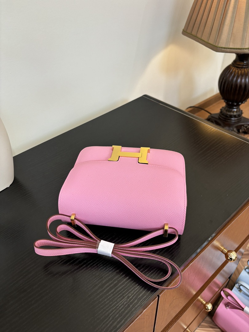 Hermes Constance Mini 18 Epson Shoulder Rose Azalee