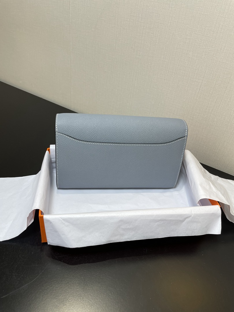 Hermes Constance Epsom Long To Go Wallet bleu lin Silver Hardware