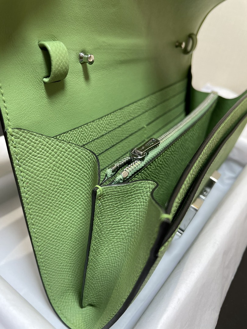 Hermes Constance Epsom Long To Go Wallet Avocado Green Silver Hardware