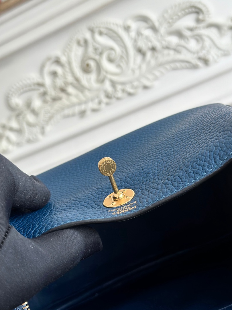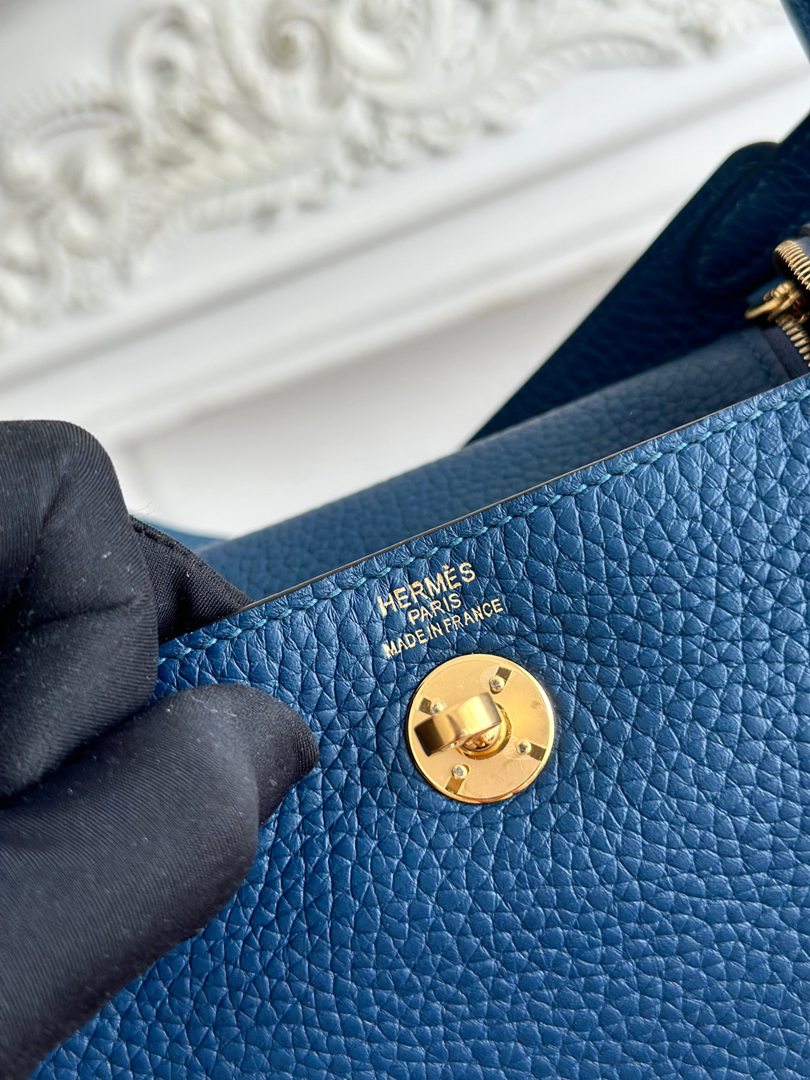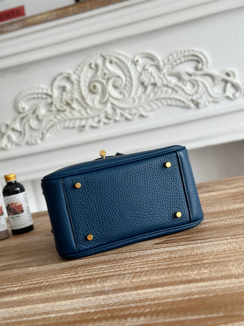 Hermes Mini Lindy Taurillon Clemence 19 Deep bleu