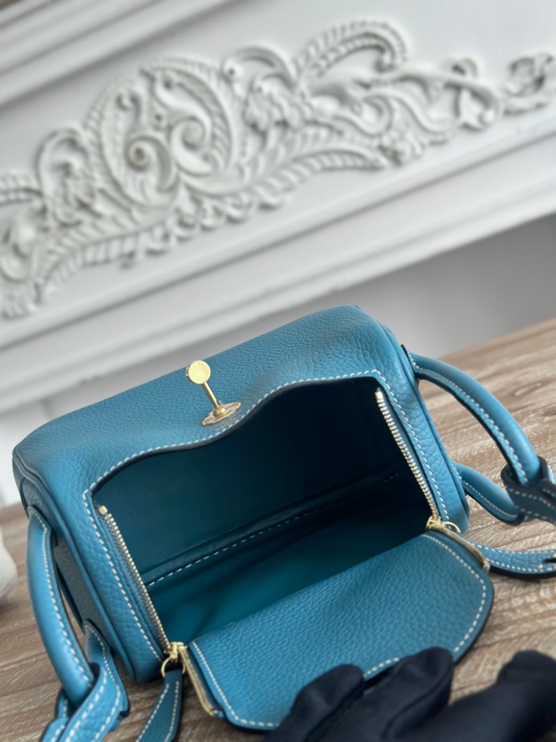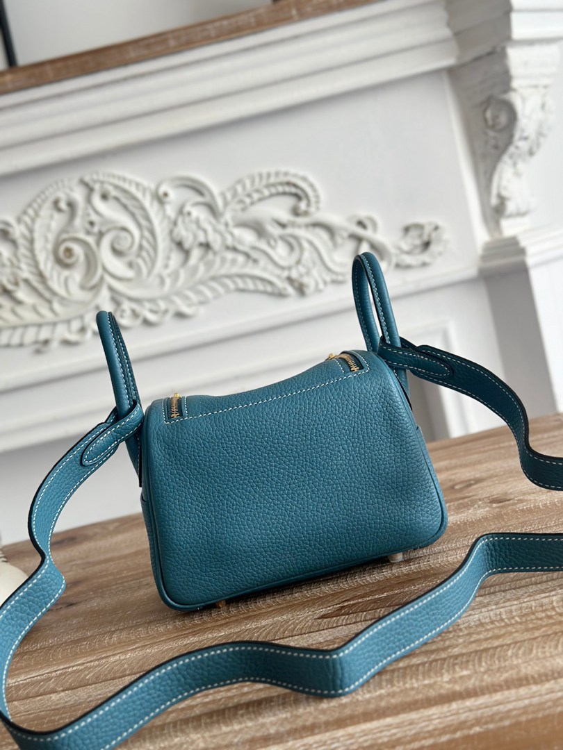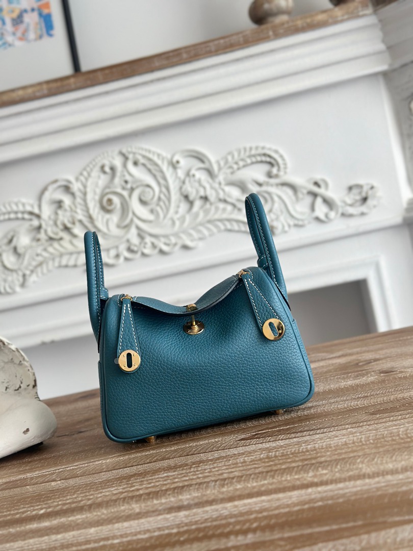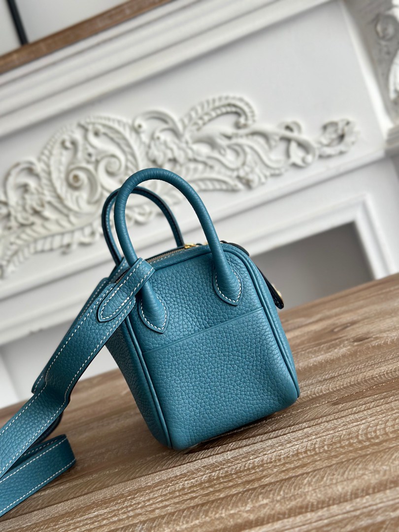 Hermes Mini Lindy Taurillon Clemence 19 Bleu Jean