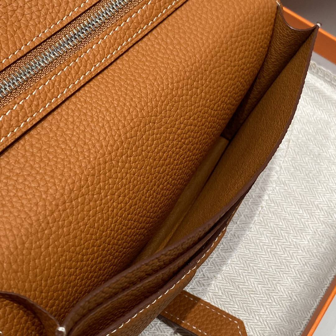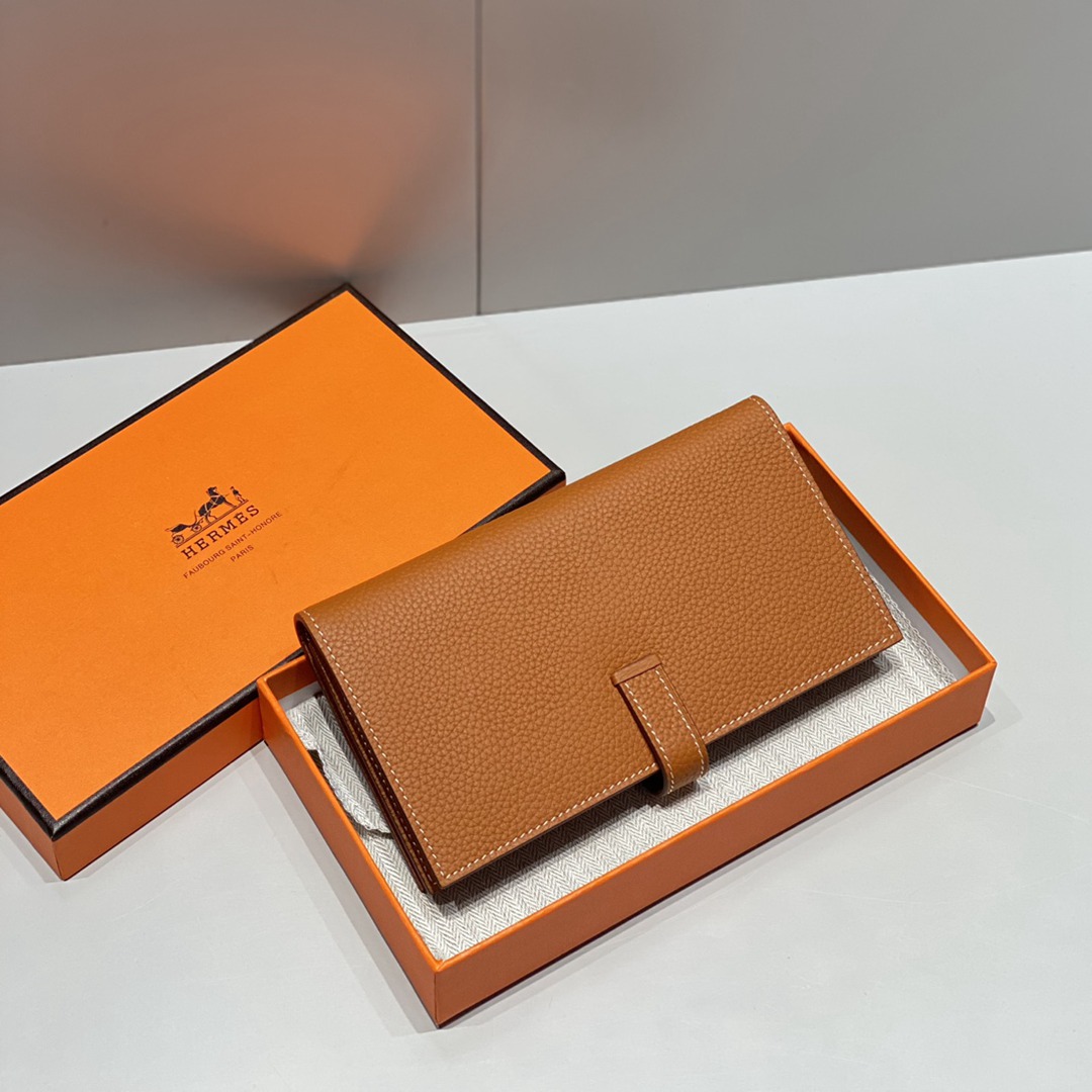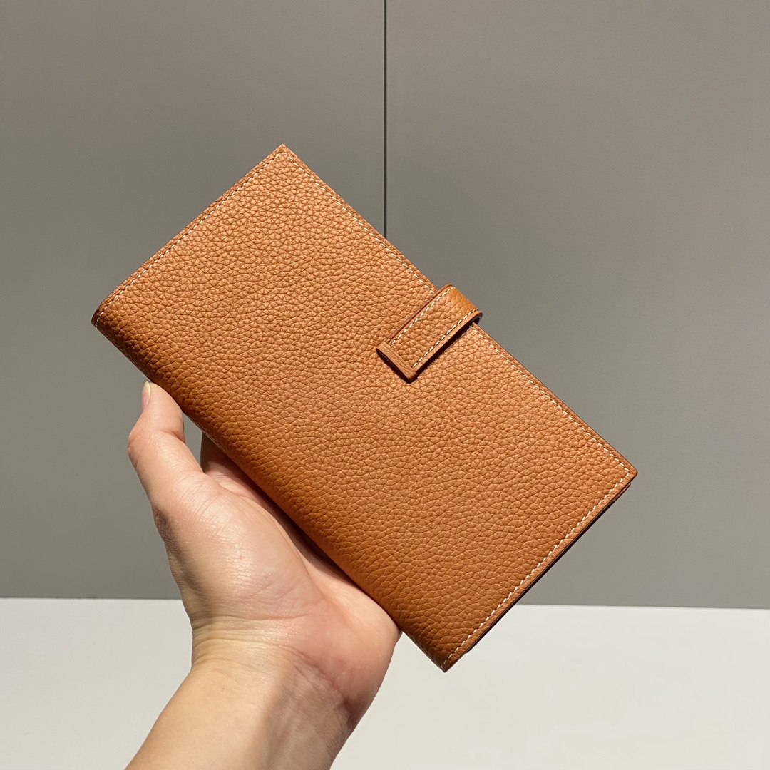 Hermes Togo Bearn Gusset Wallet Brown