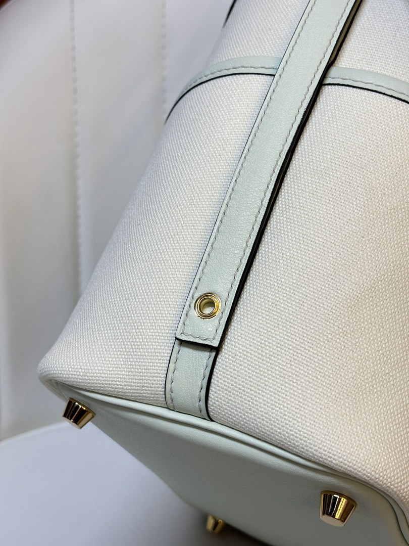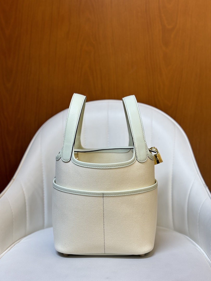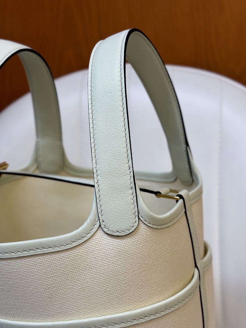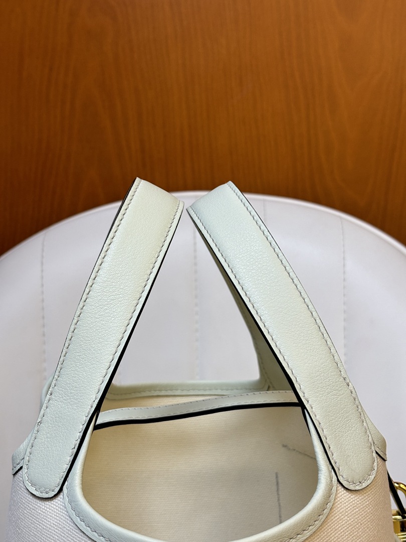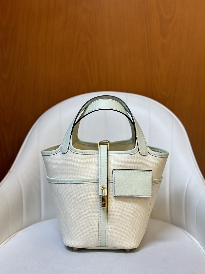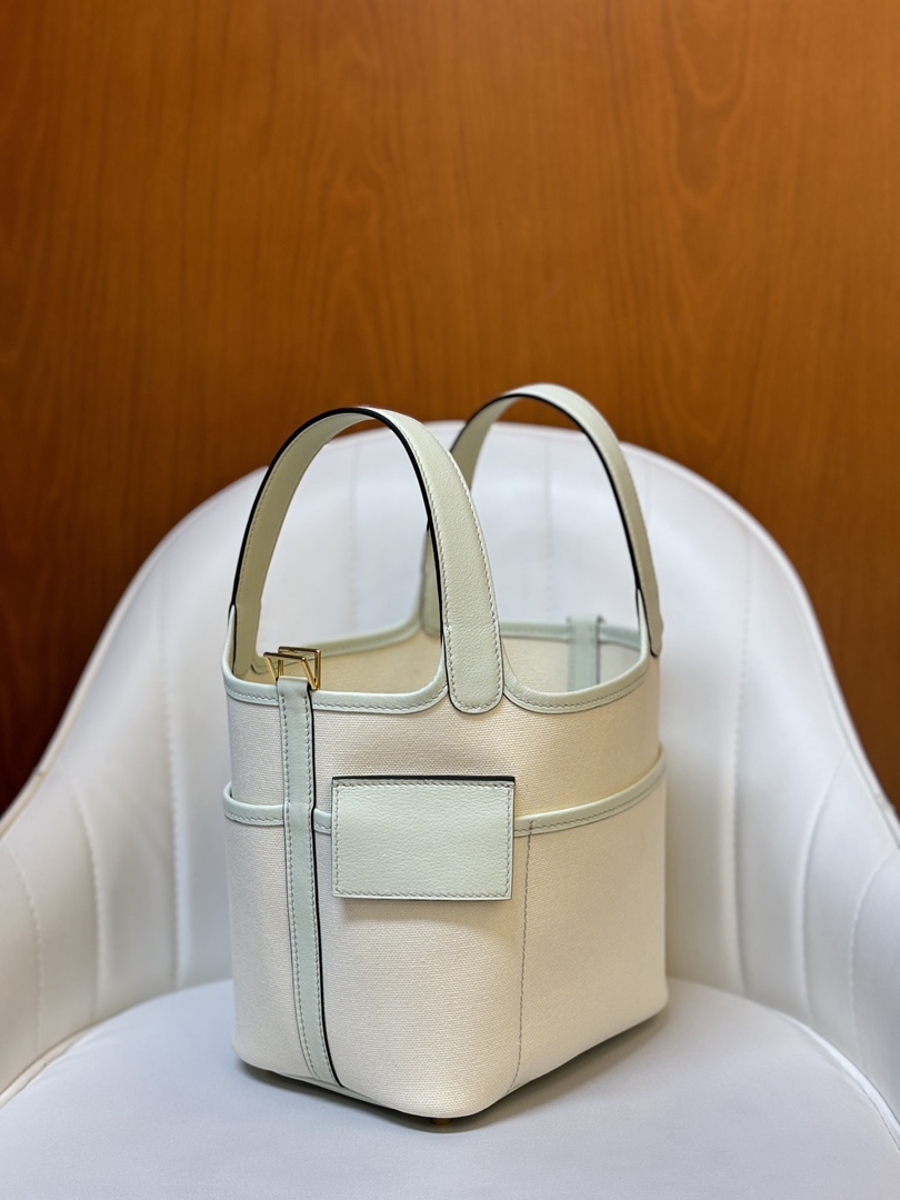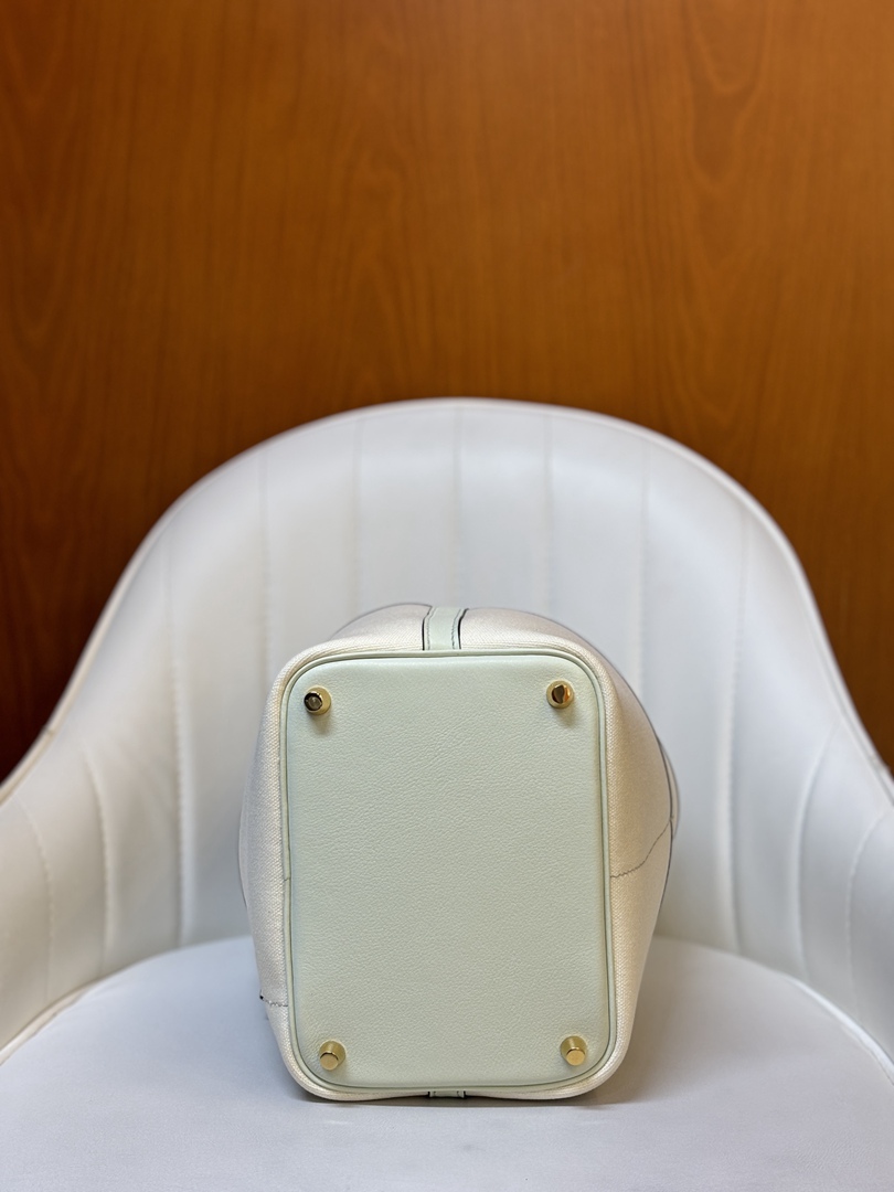 Hermes Cargo Picotin Toile Goeland Swift Picotin Lock 18 Craie and Vert Fizz