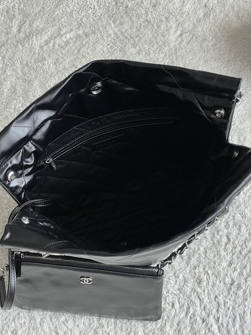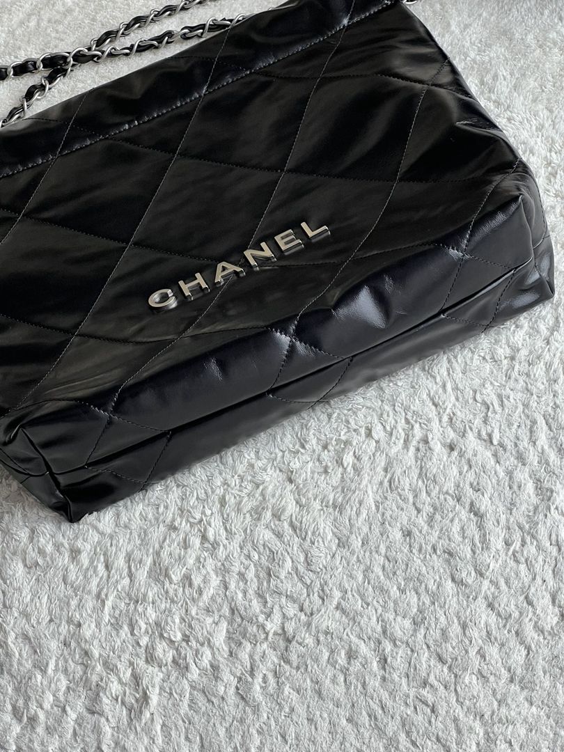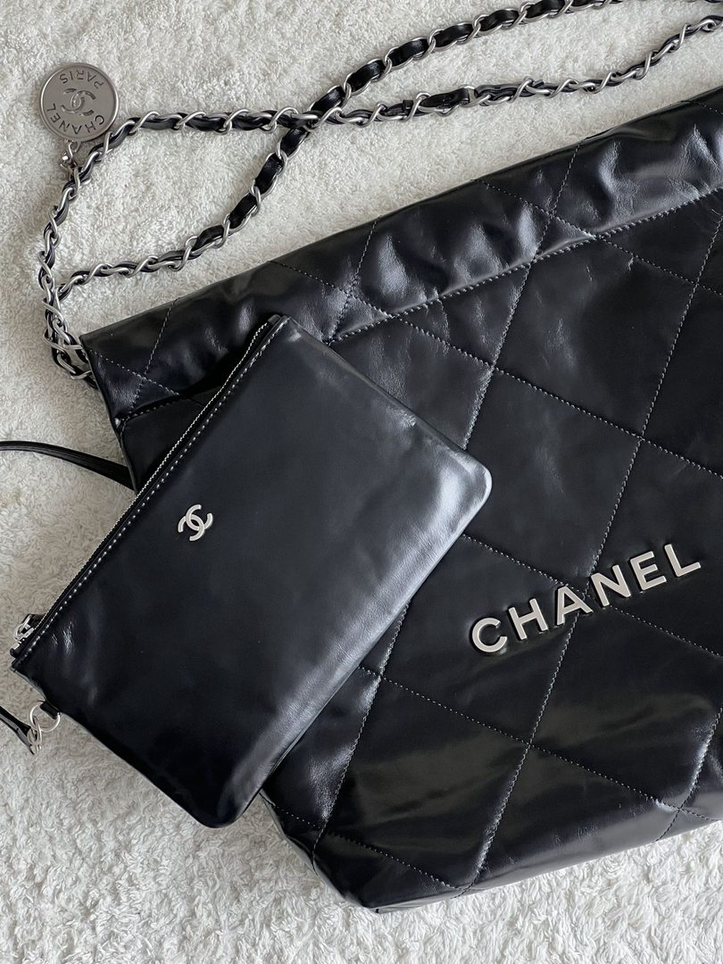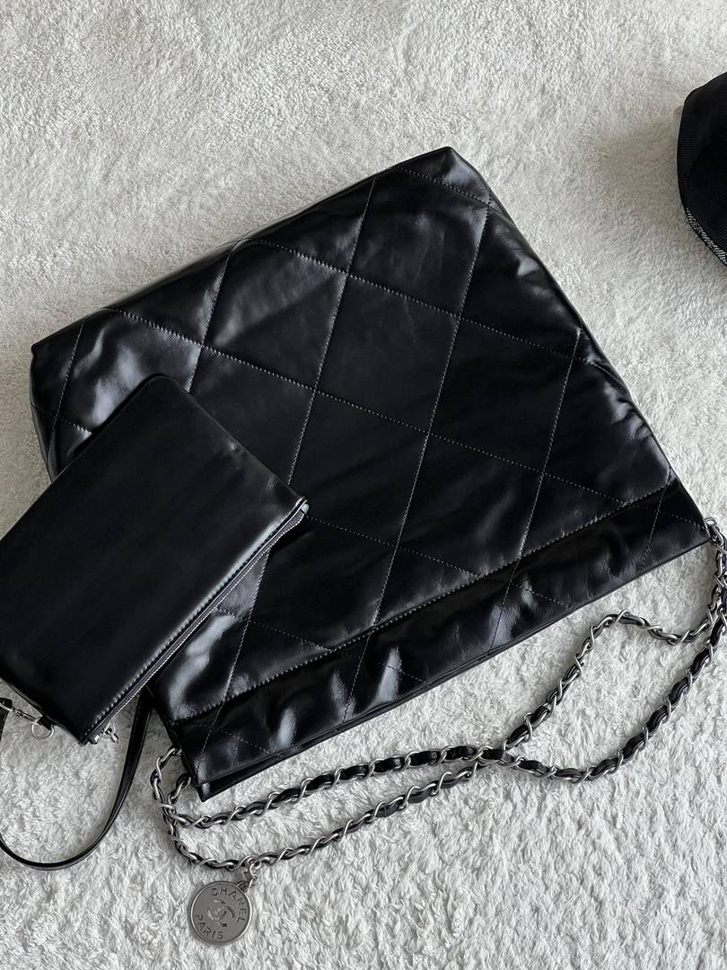 chanel 22 bag black Calfskin leather sliver hardware small