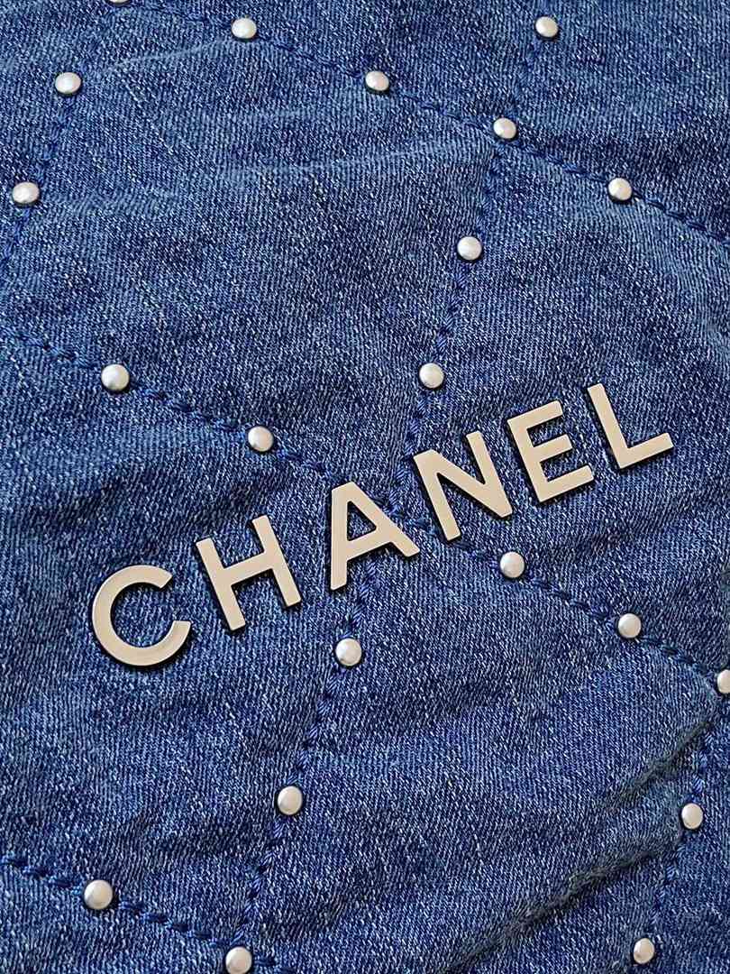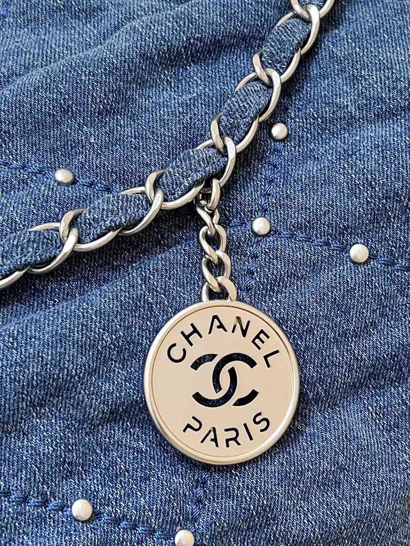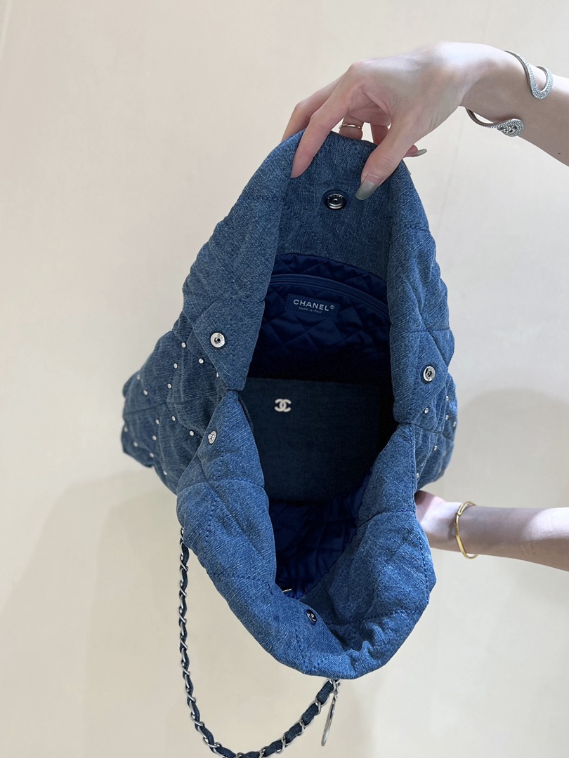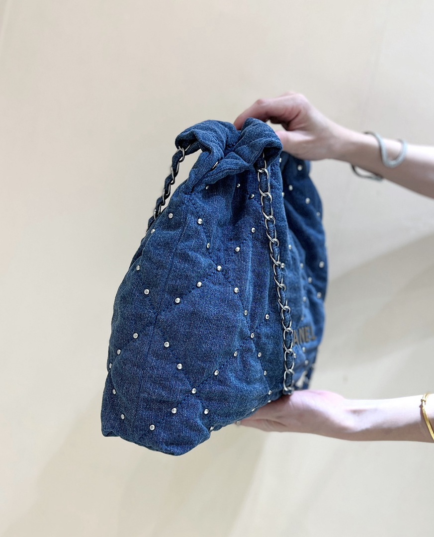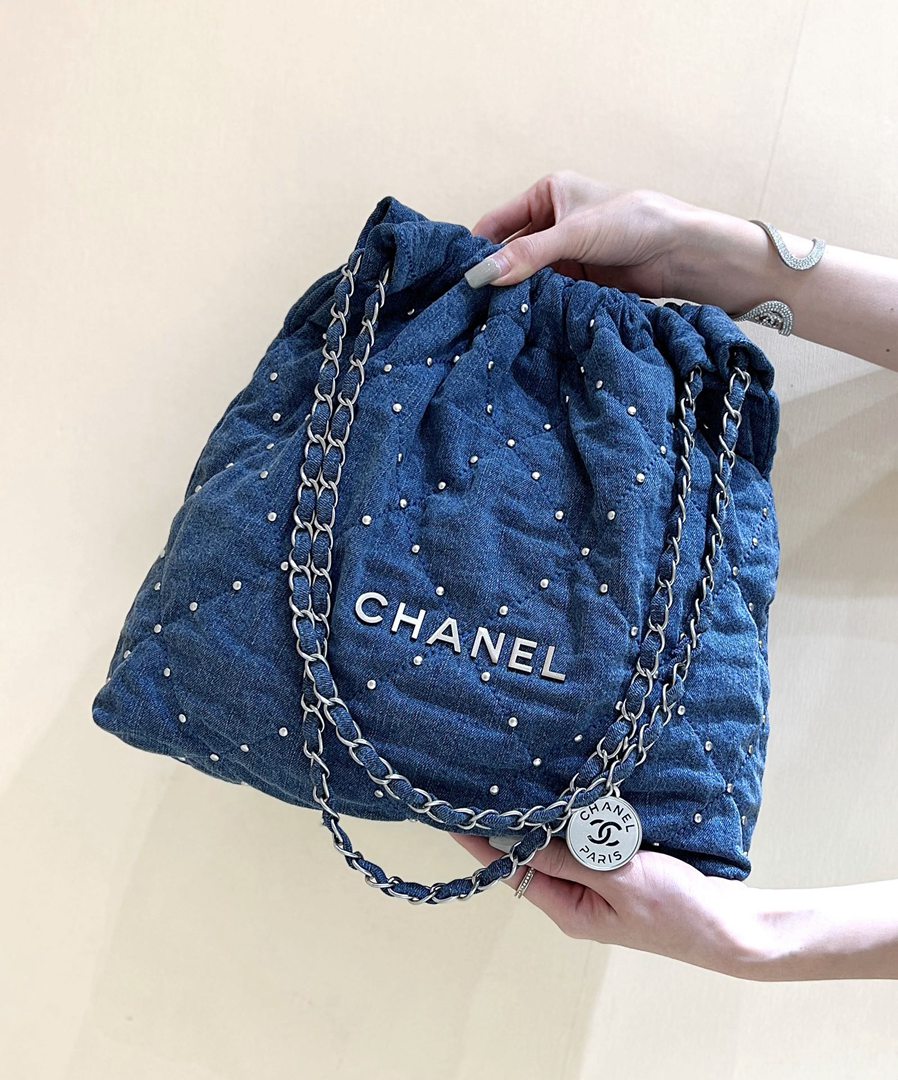 chanel 24s 22 bag denim rivets sliver hardware small