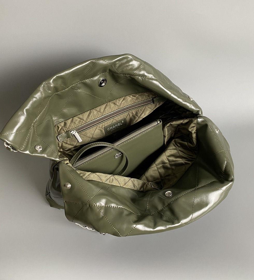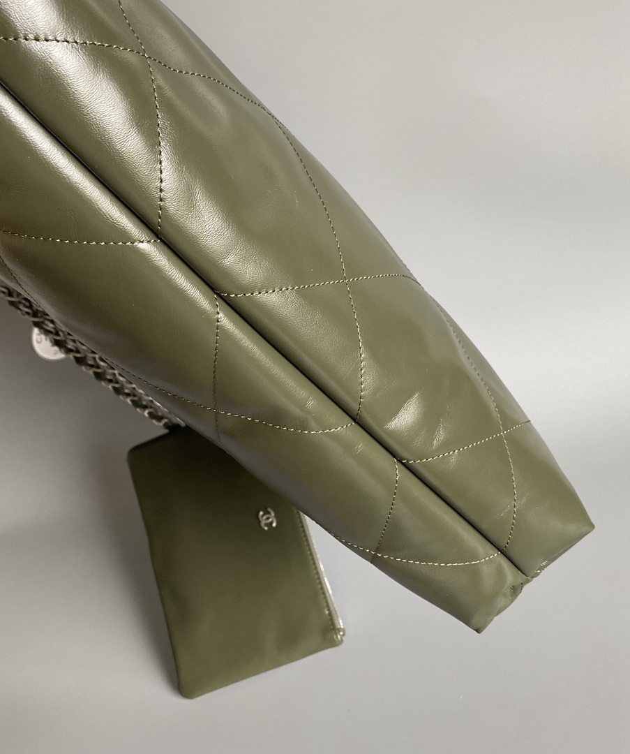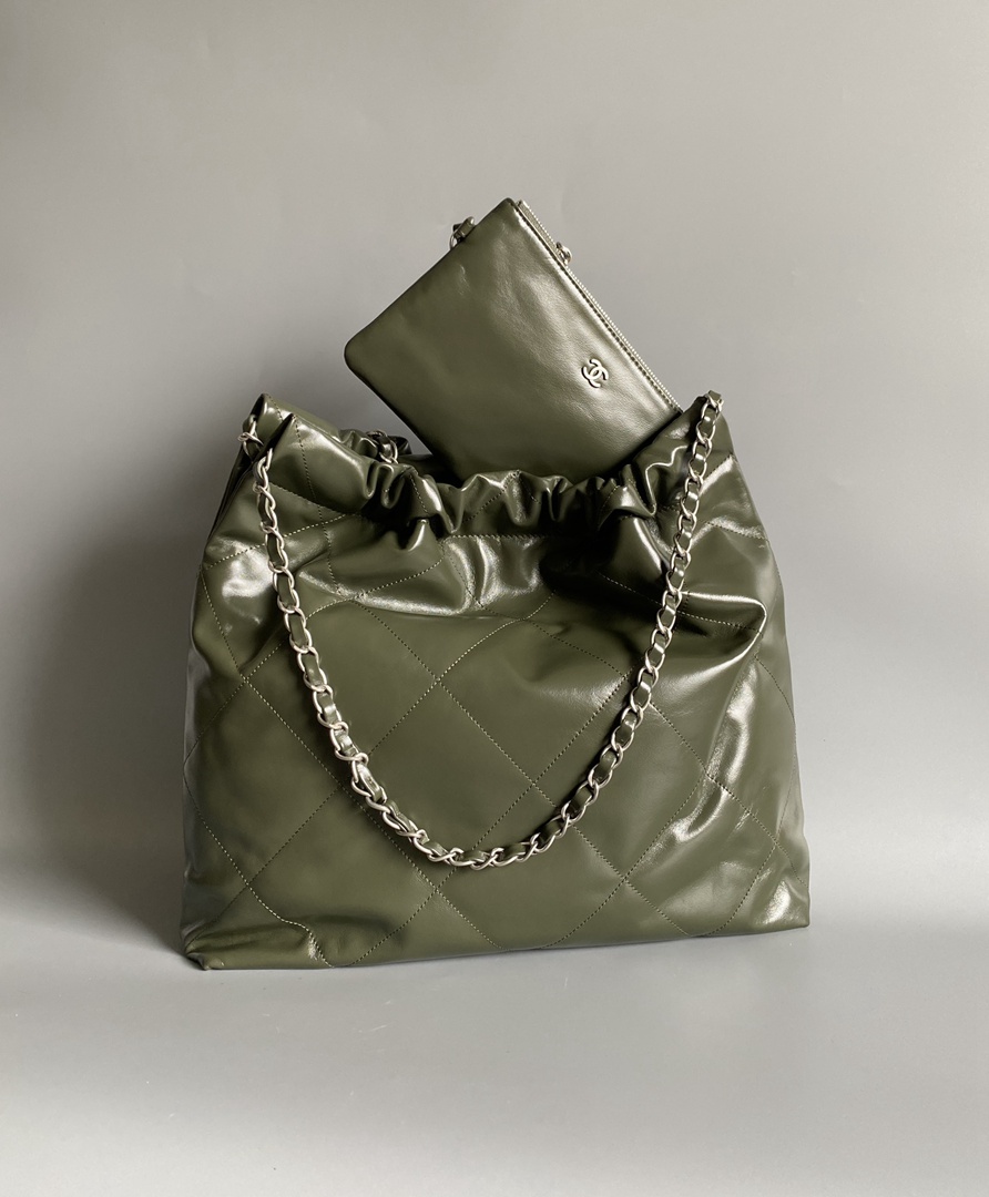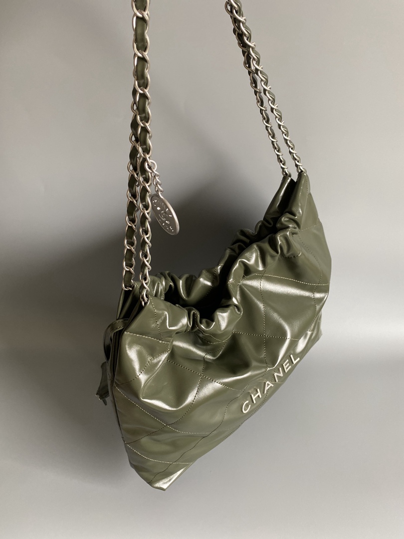 chanel 22 bag olive green shiny Calfskin silver hardware medium
