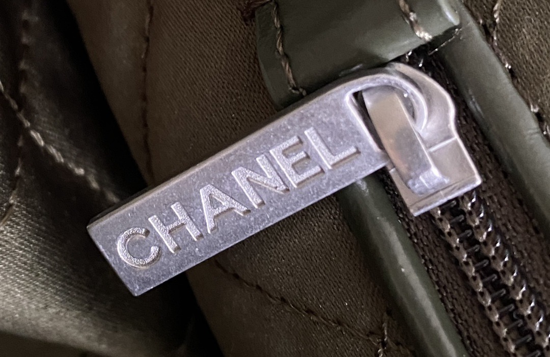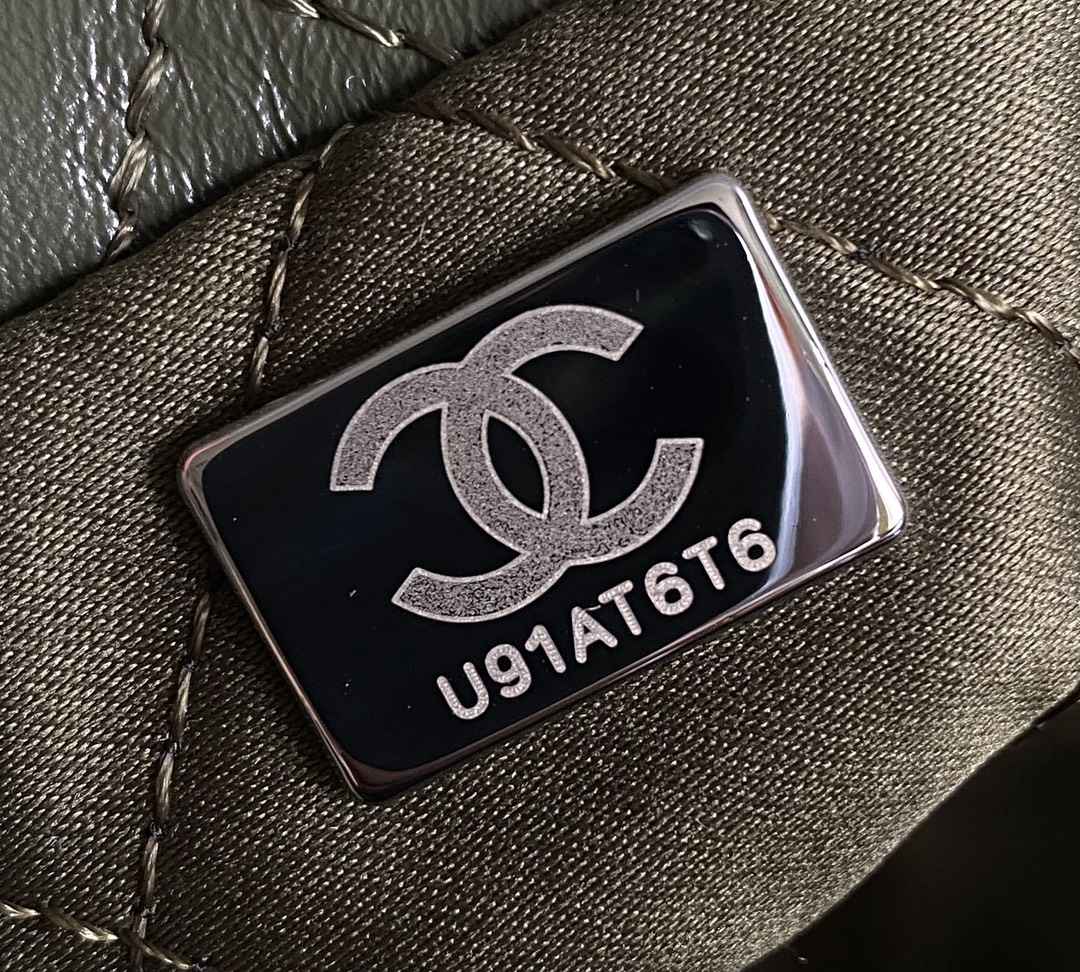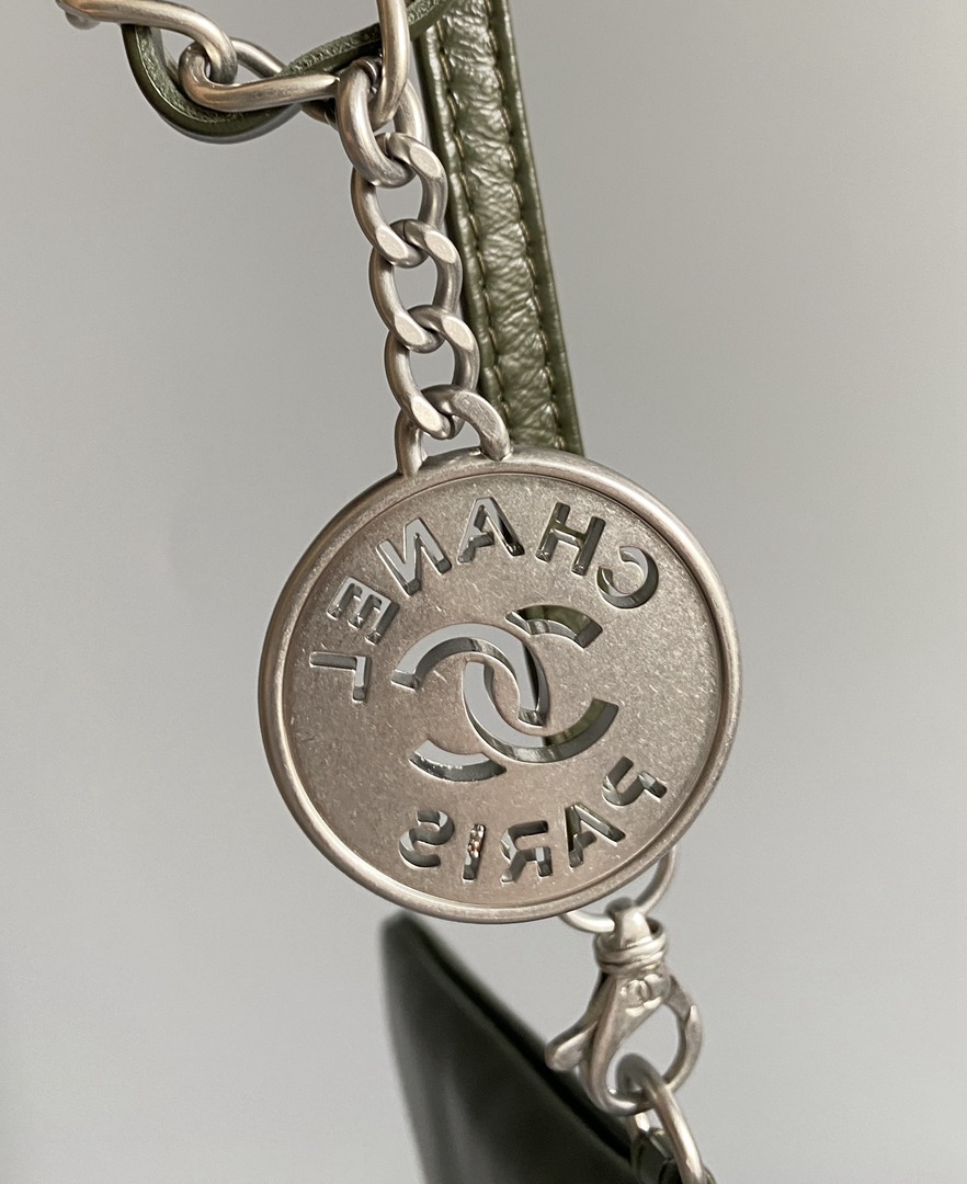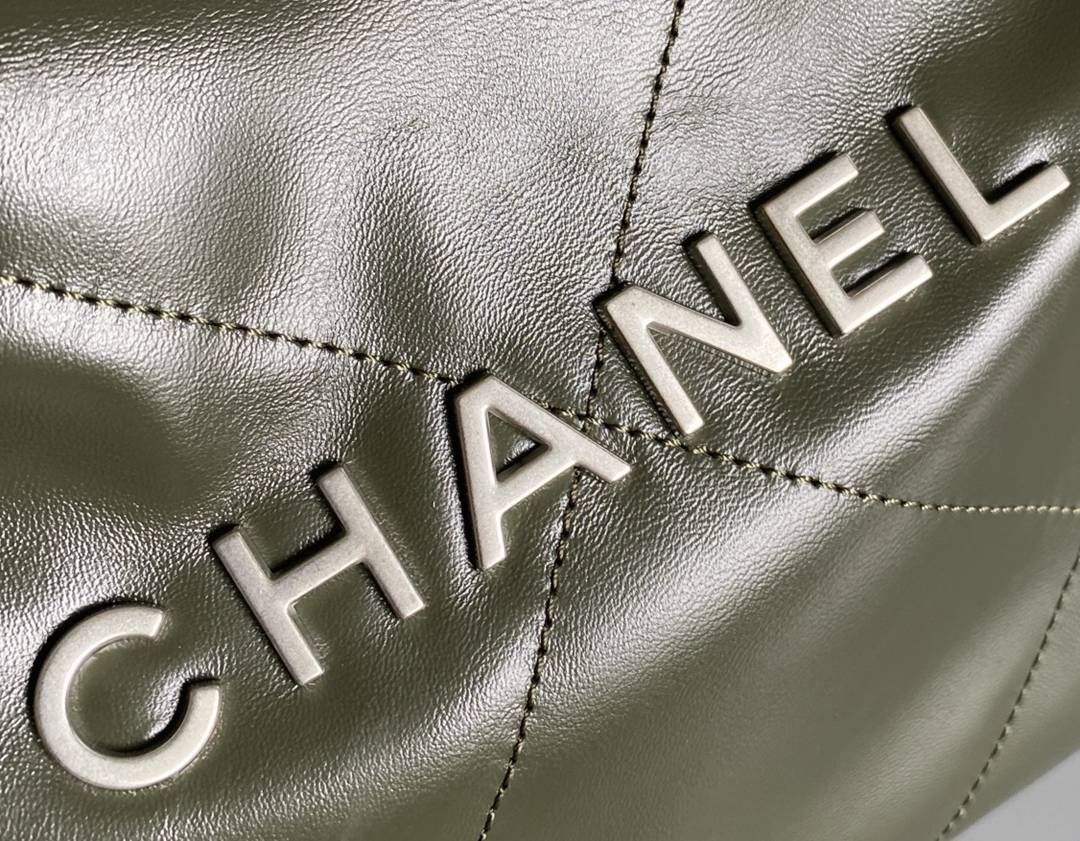 chanel 22 bag olive green shiny Calfskin silver hardware medium