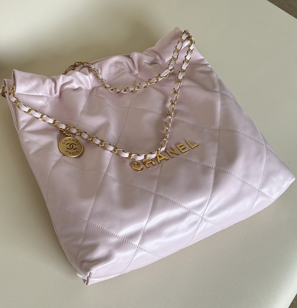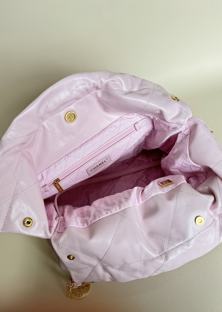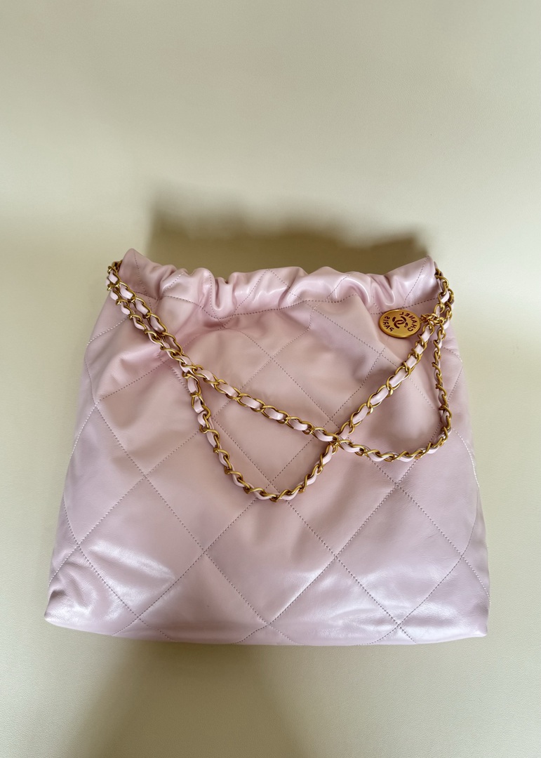 chanel 22 bag pink shiny Calfskin gold hardware medium