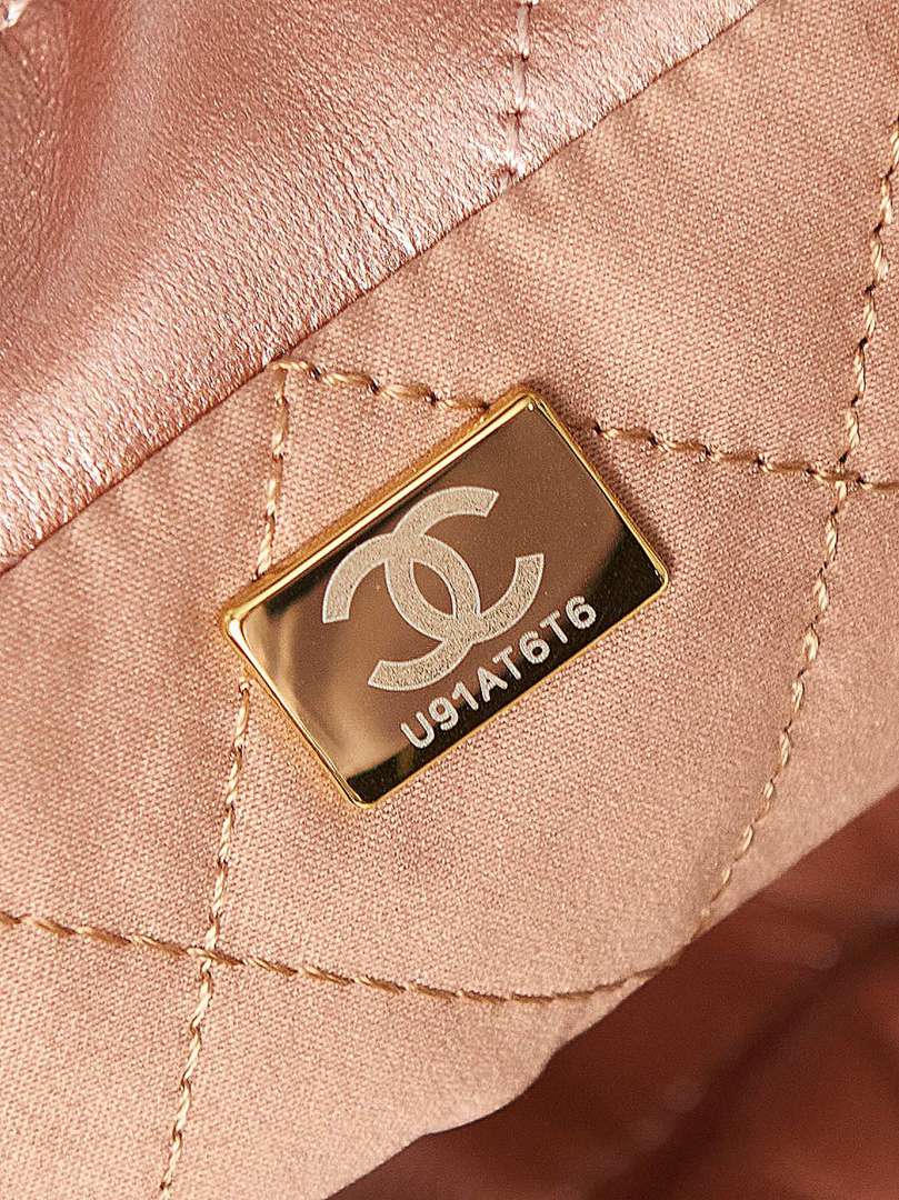 chanel 22 bag Rose gold shiny Calfskin gold hardware mini