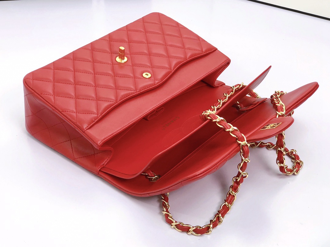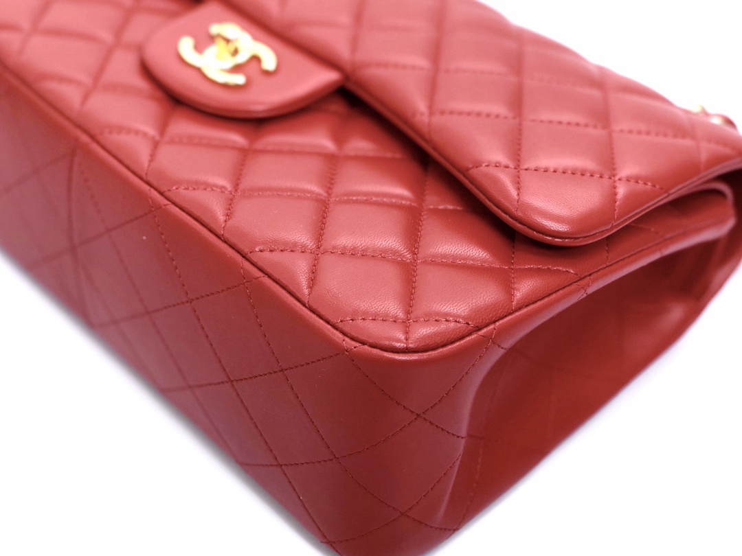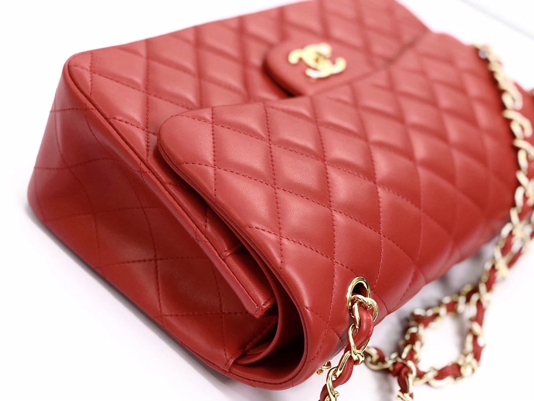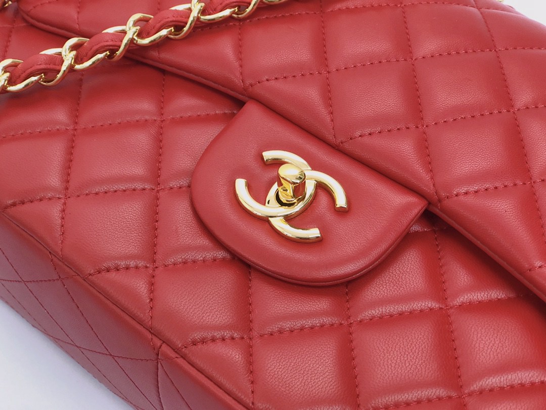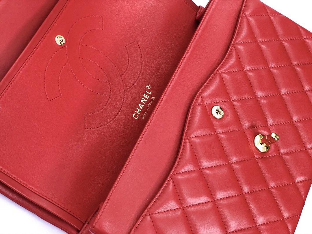 chanel cf red shiny lambskin gold hardware