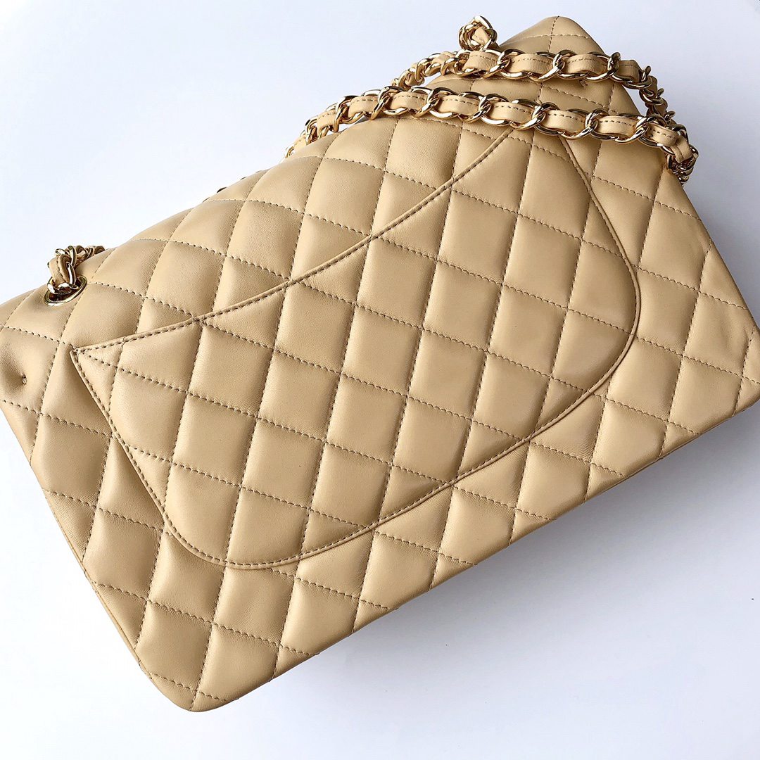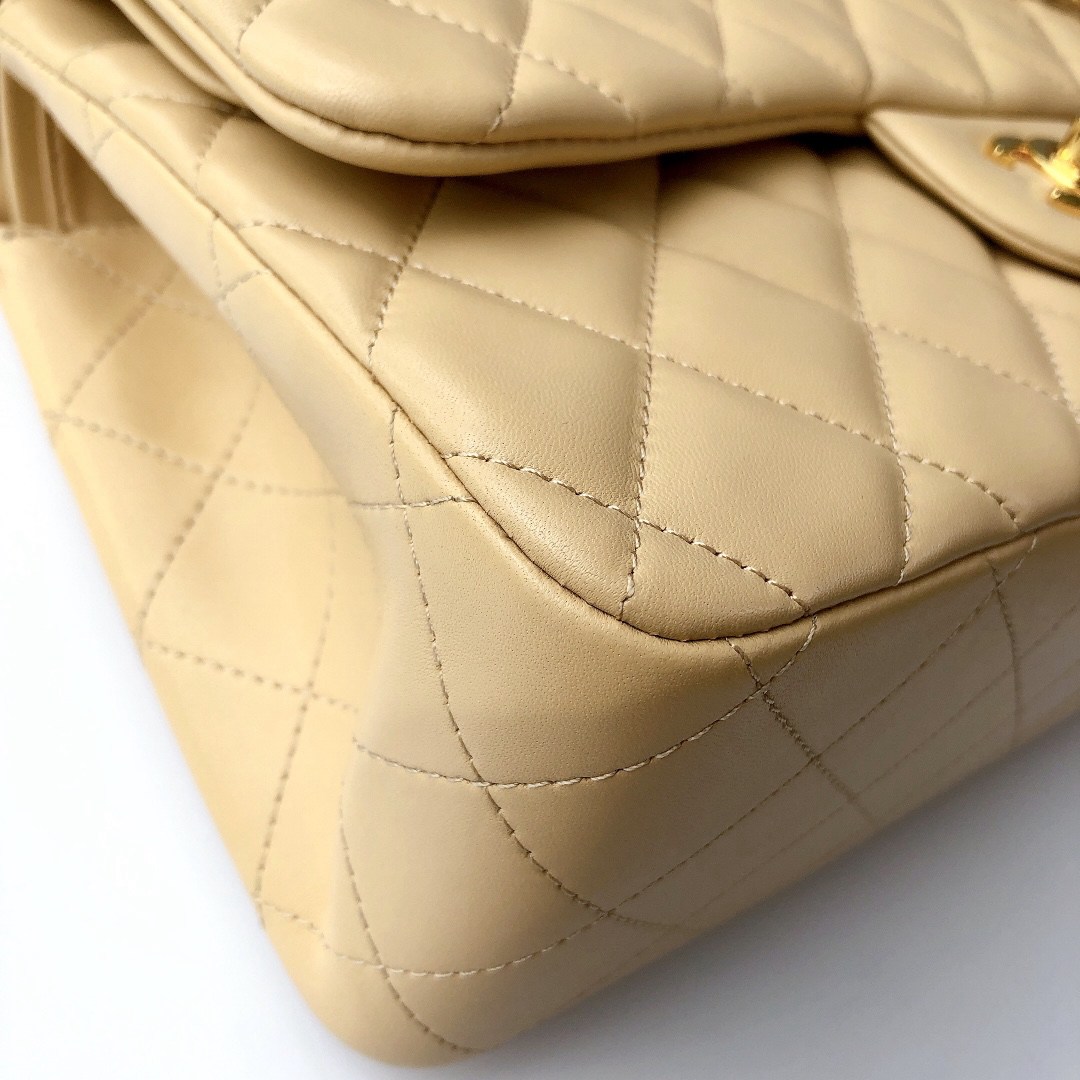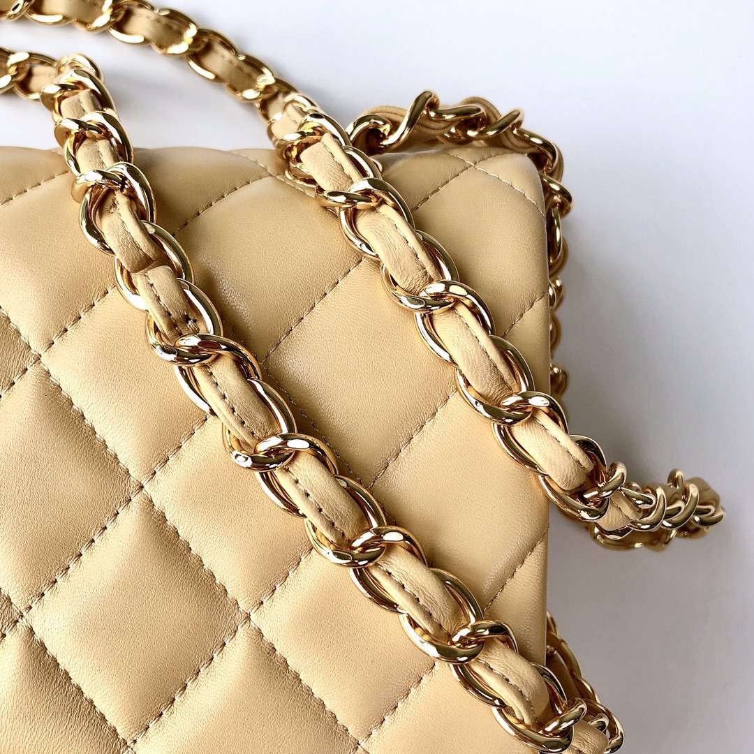 chanel cf Dark yellow shiny lambskin gold hardware