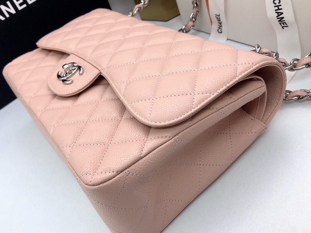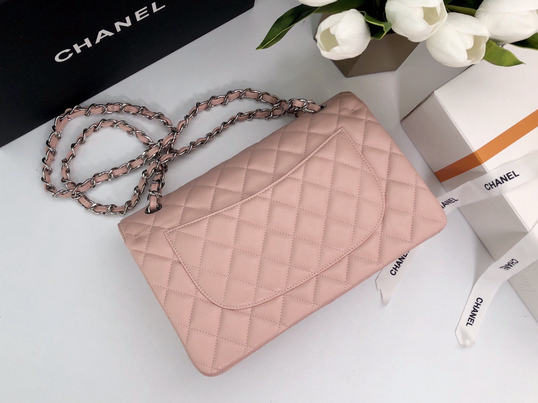 chanel cf pink Caviar calfskin sliver hardware