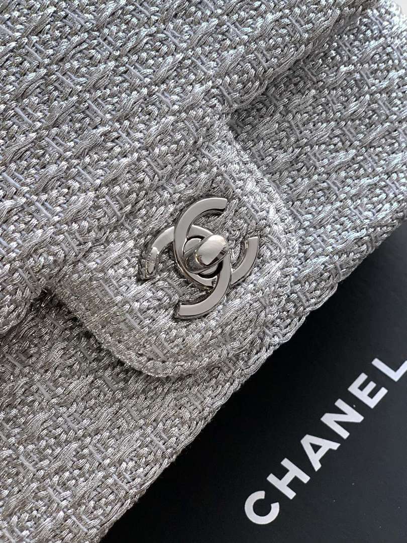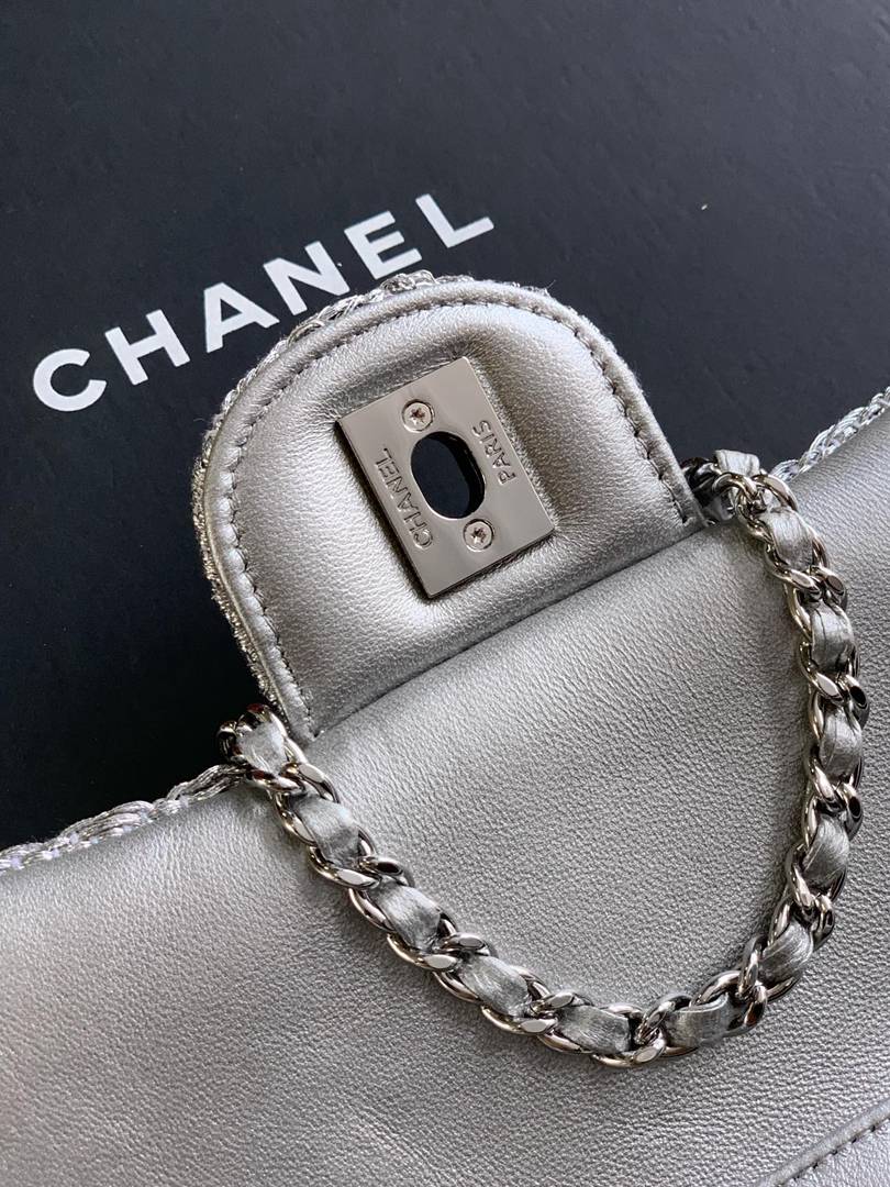 chanel 25s cf white Tweed&lambskin sliver hardware