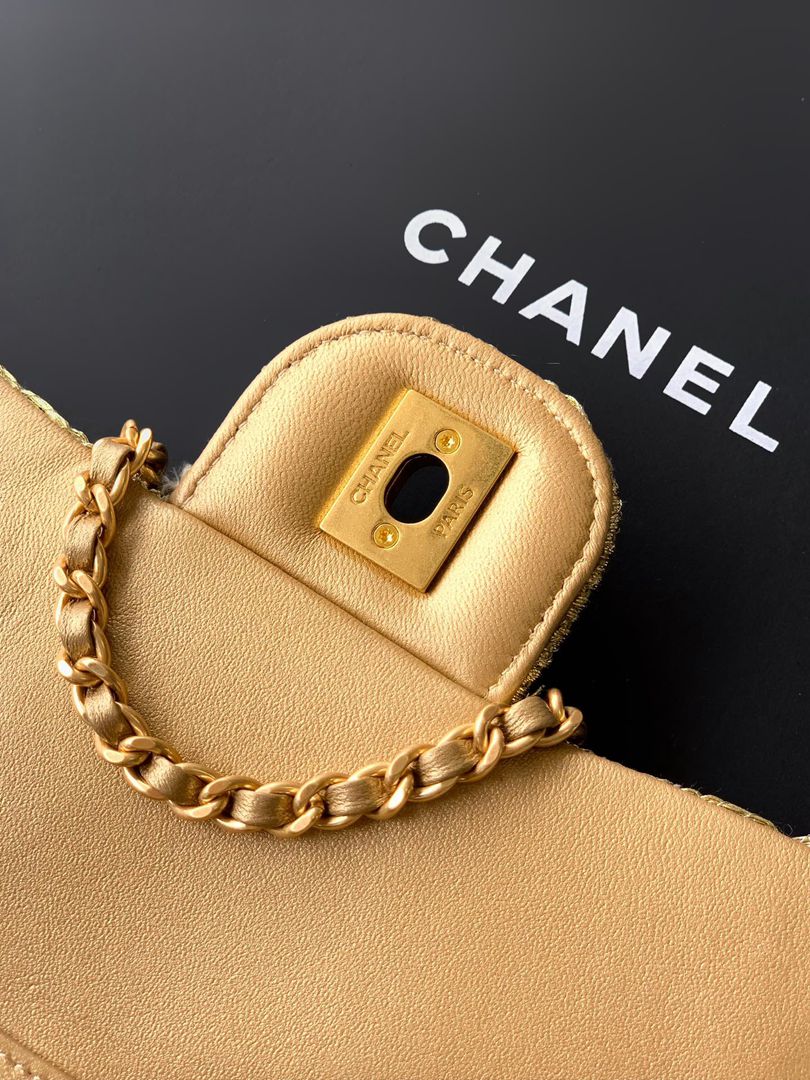 chanel 25s cf yellow Tweed&lambskin gold hardware