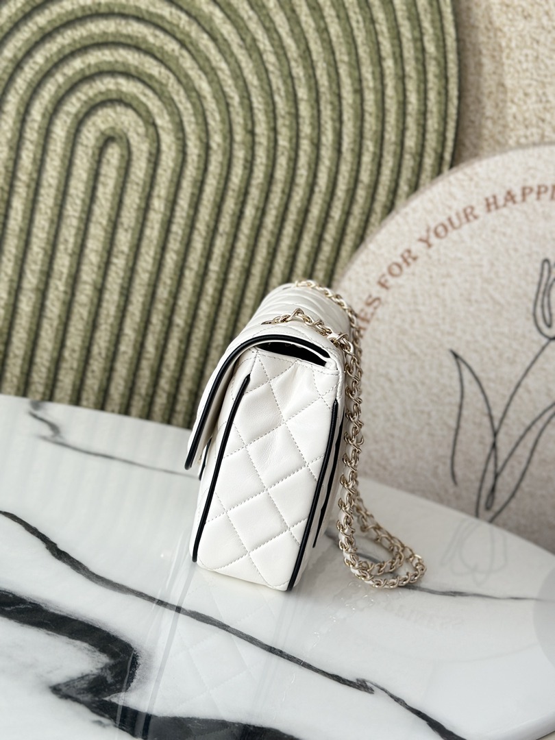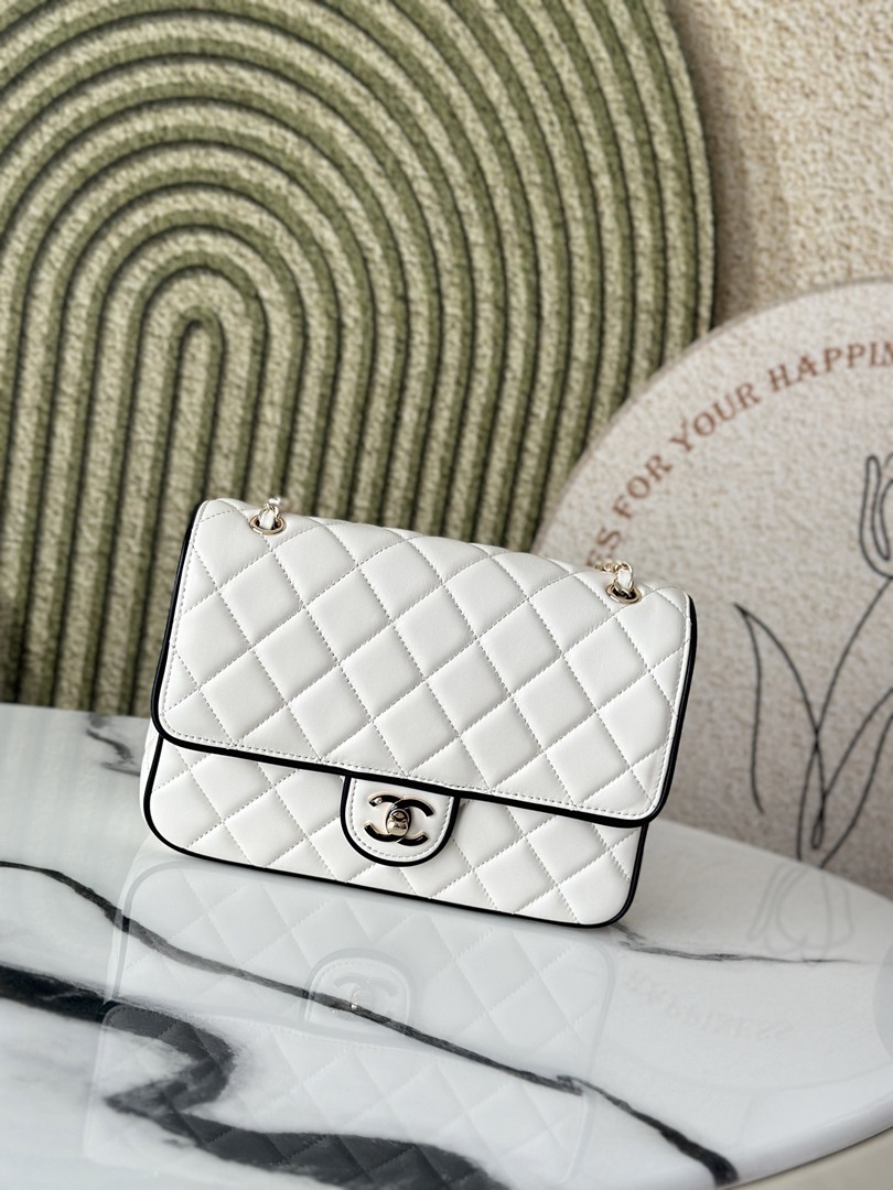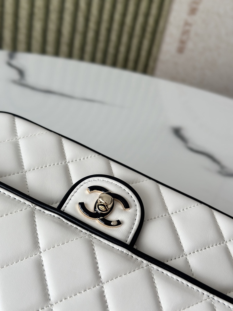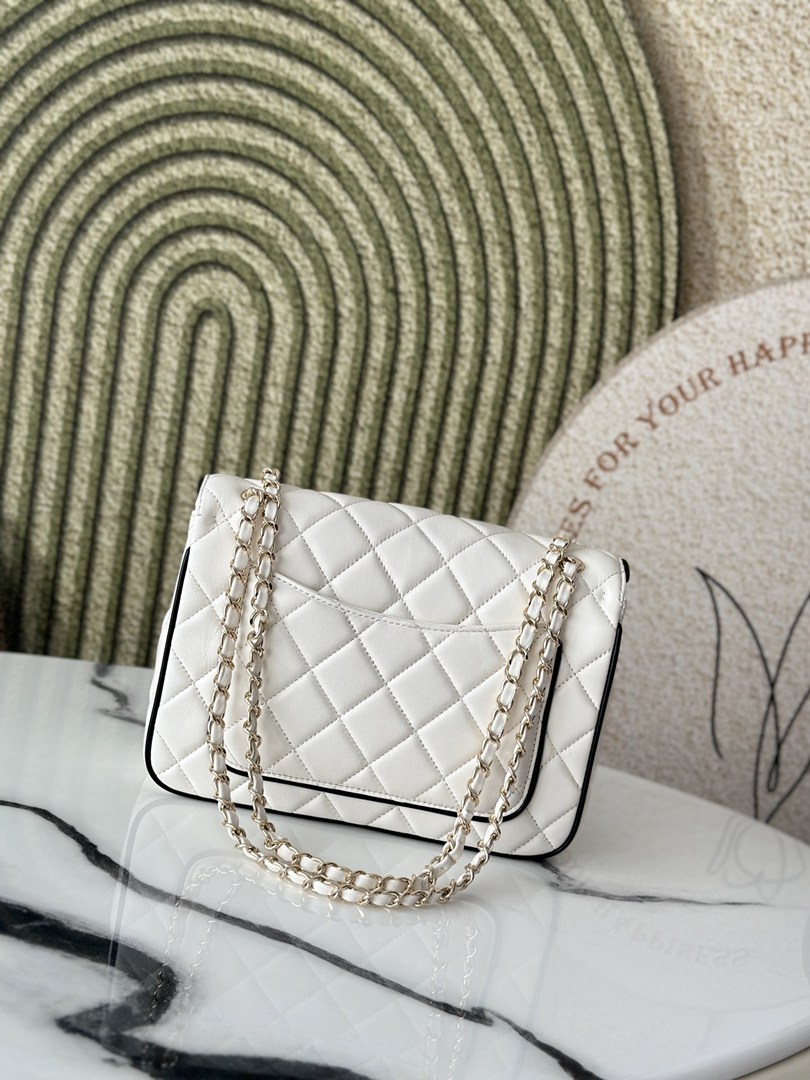 chanel 25p cf black edges&white shiny lambskin gold hardware large
