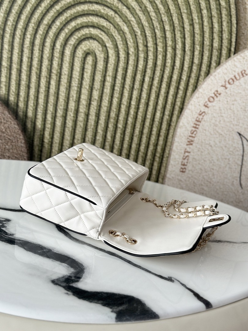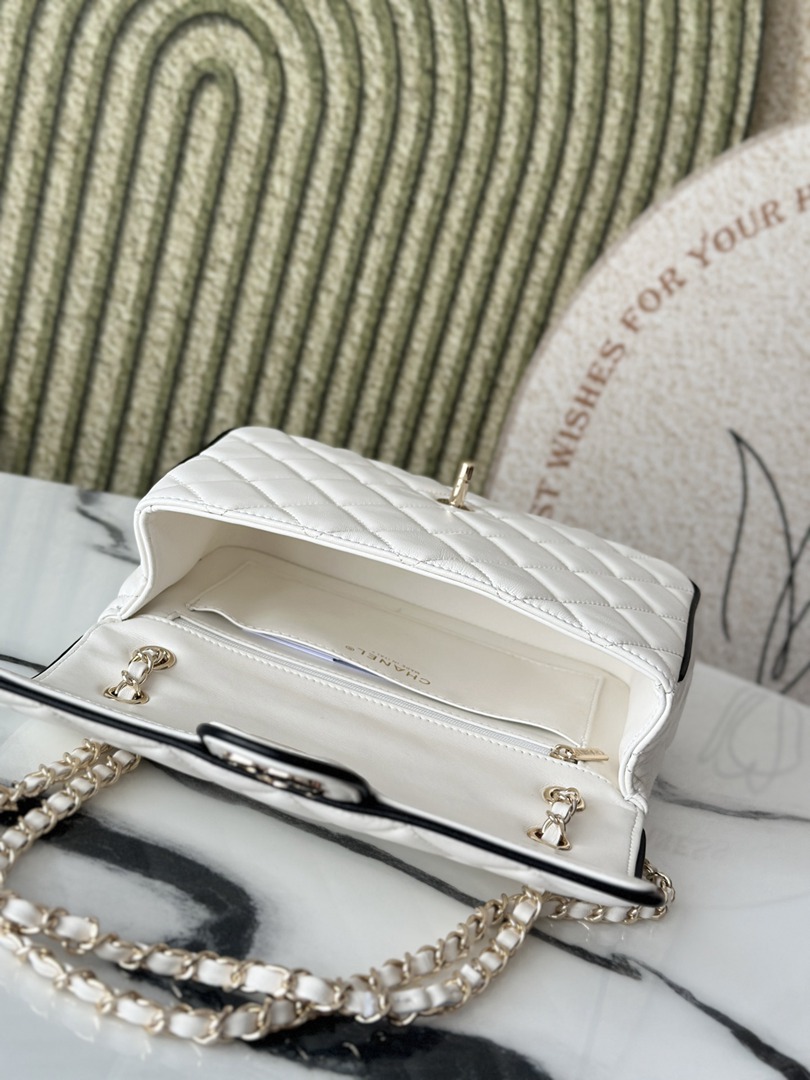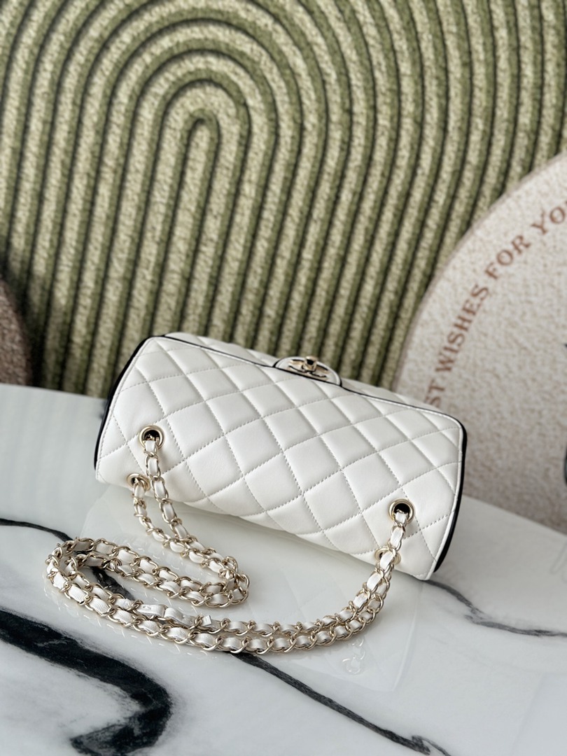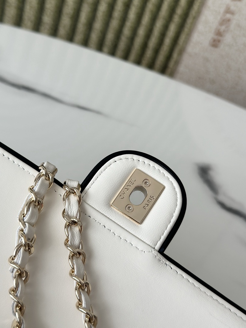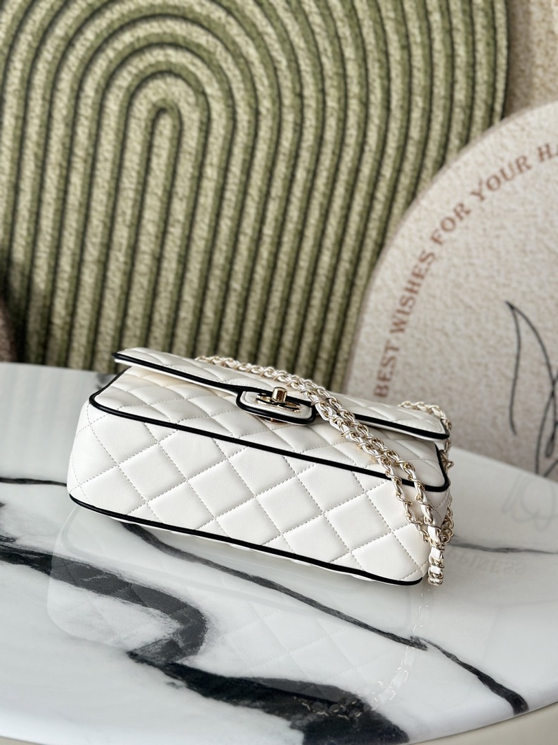 chanel 25p cf black edges&white shiny lambskin gold hardware large