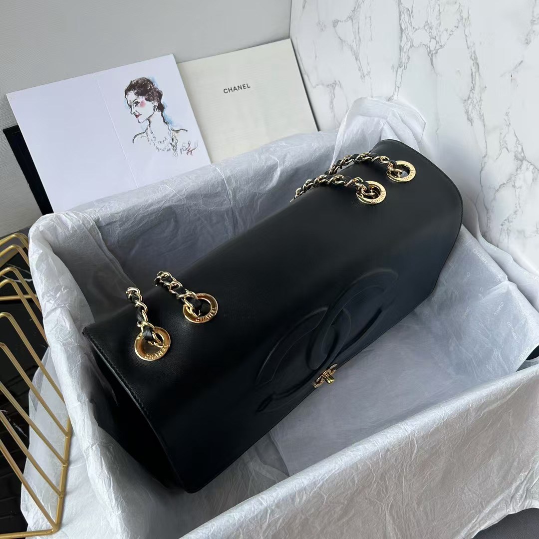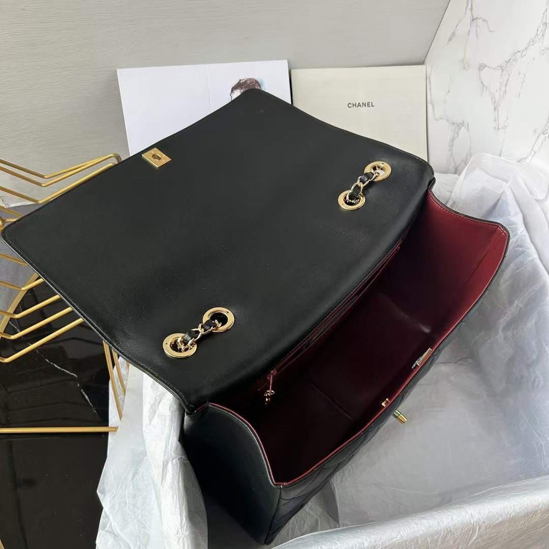 chanel maxi cf black shiny lambskin gold hardwarelarge