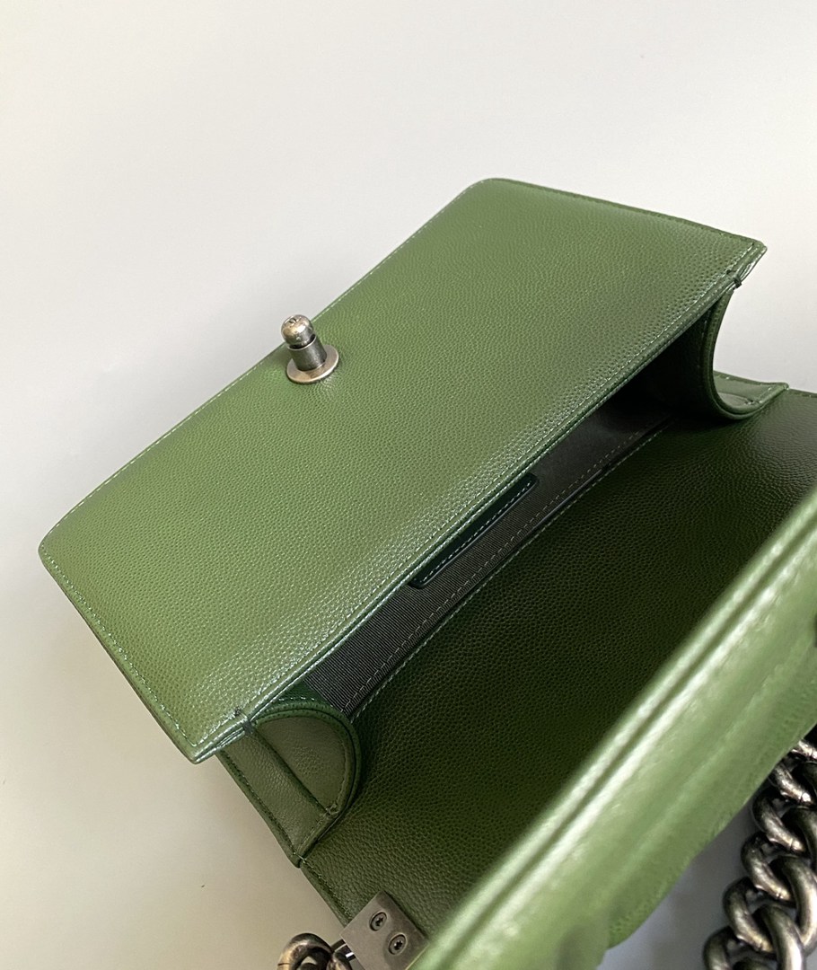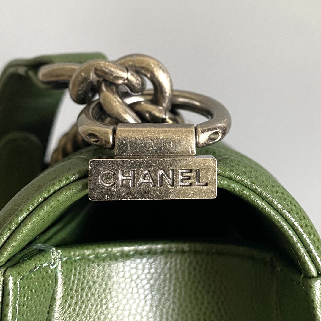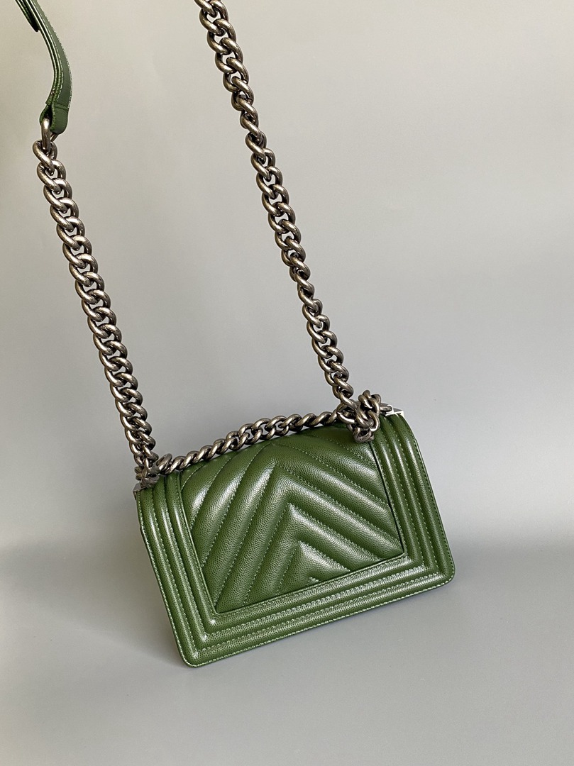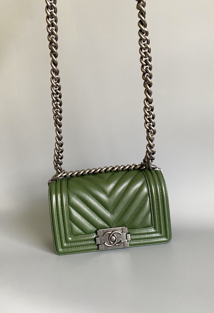 chanel leboy green Caviar Chevron Quilted sliver hardware small