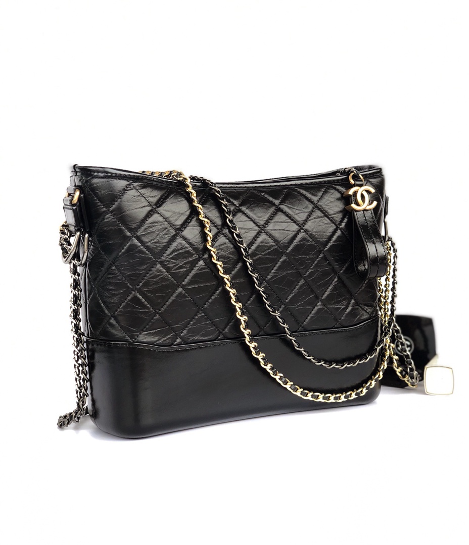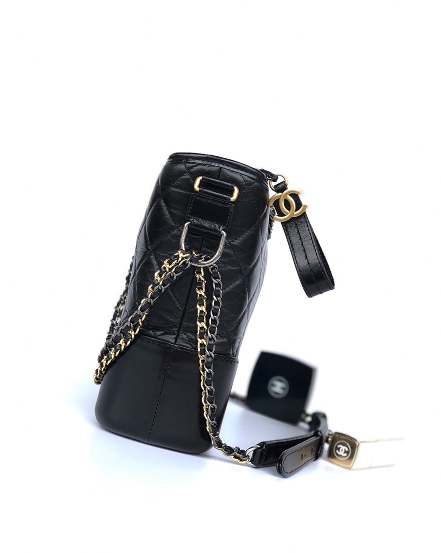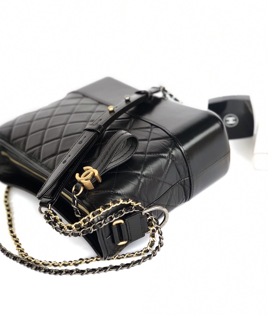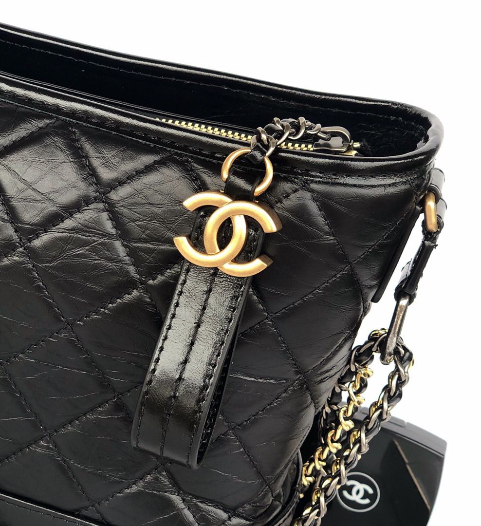 chanel gabrielle hobo bag black aged calfskin gold hardware large
